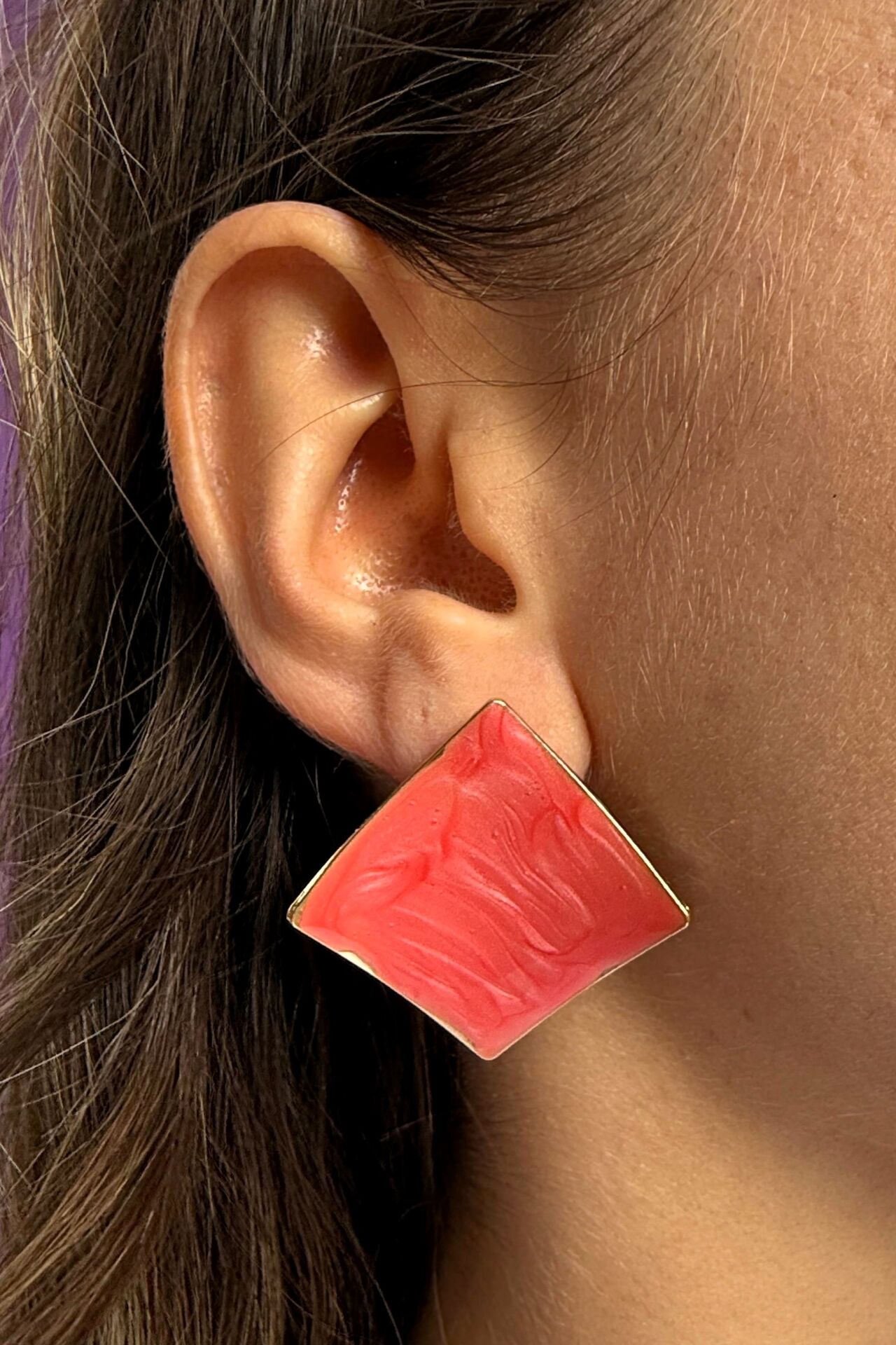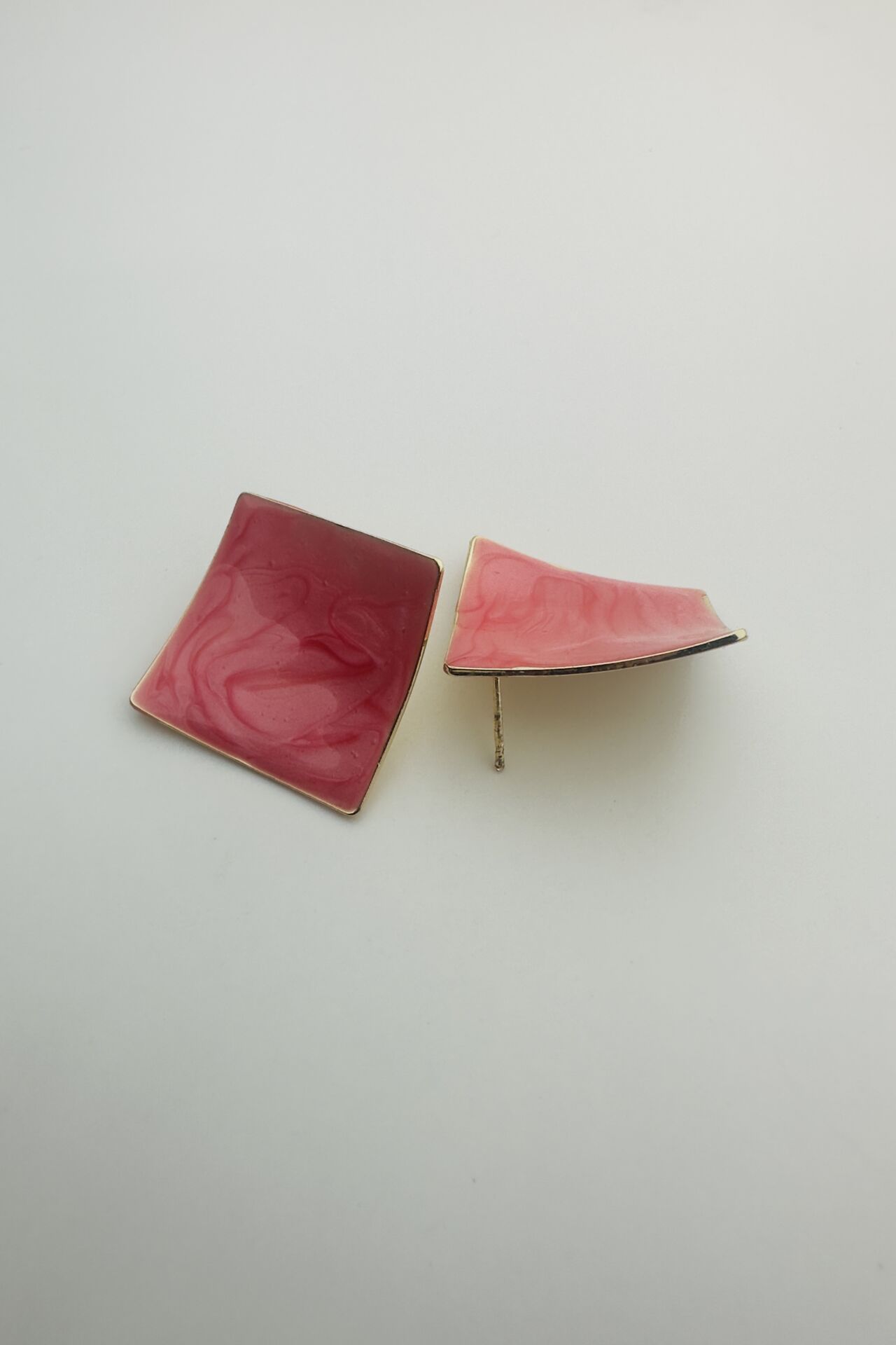 LvLv Gold Detaylı Pembe Mineli Kare Plaka Küpe