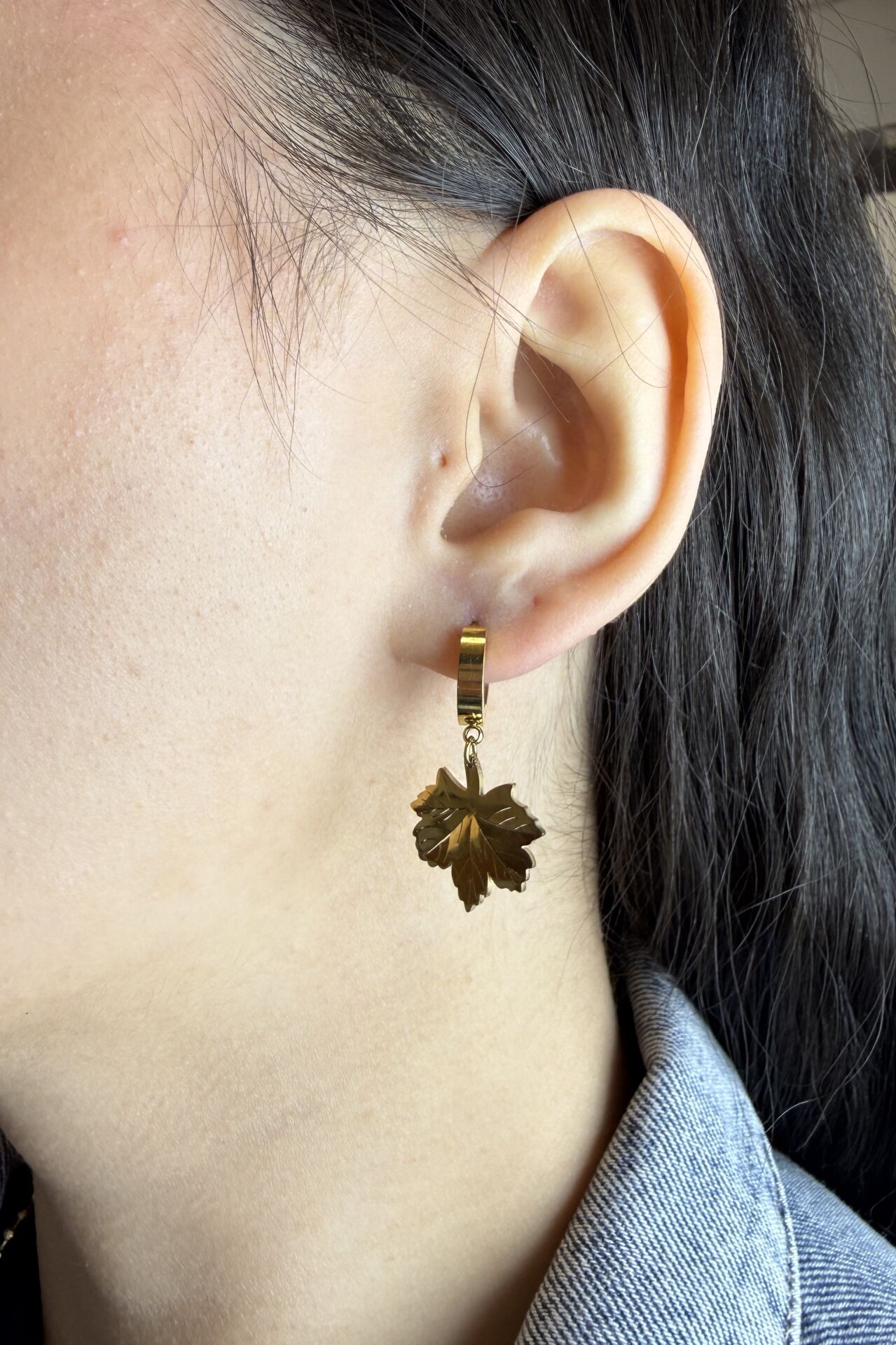 LvLv Gold Rengi Çınar Yaprağı Model Sallantılı Çelik Halka Küpe