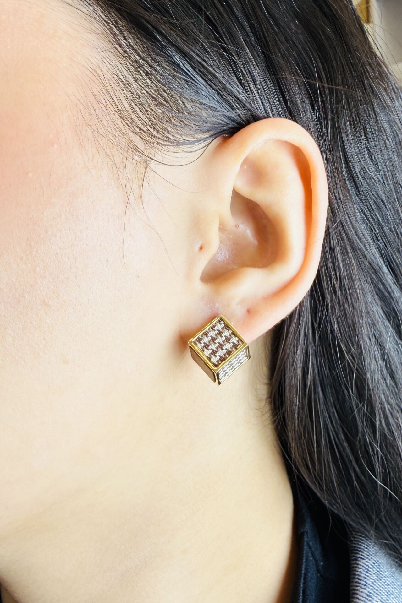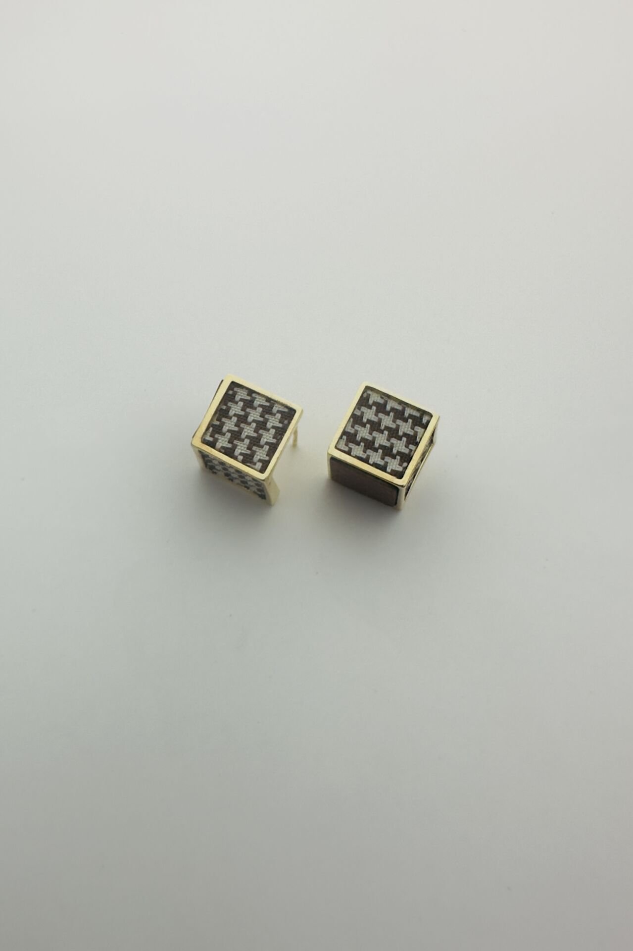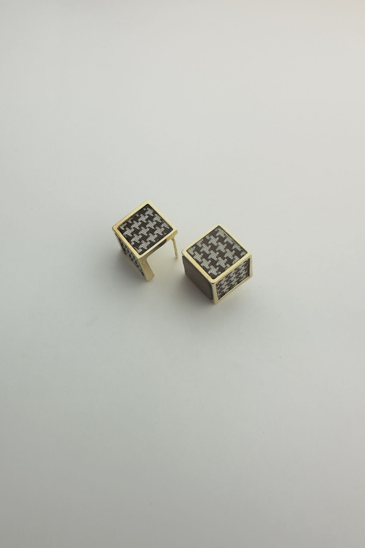 LvLv Gold Rengi Kahverengi Desenli Küp Model Tasarım İğne Küpe