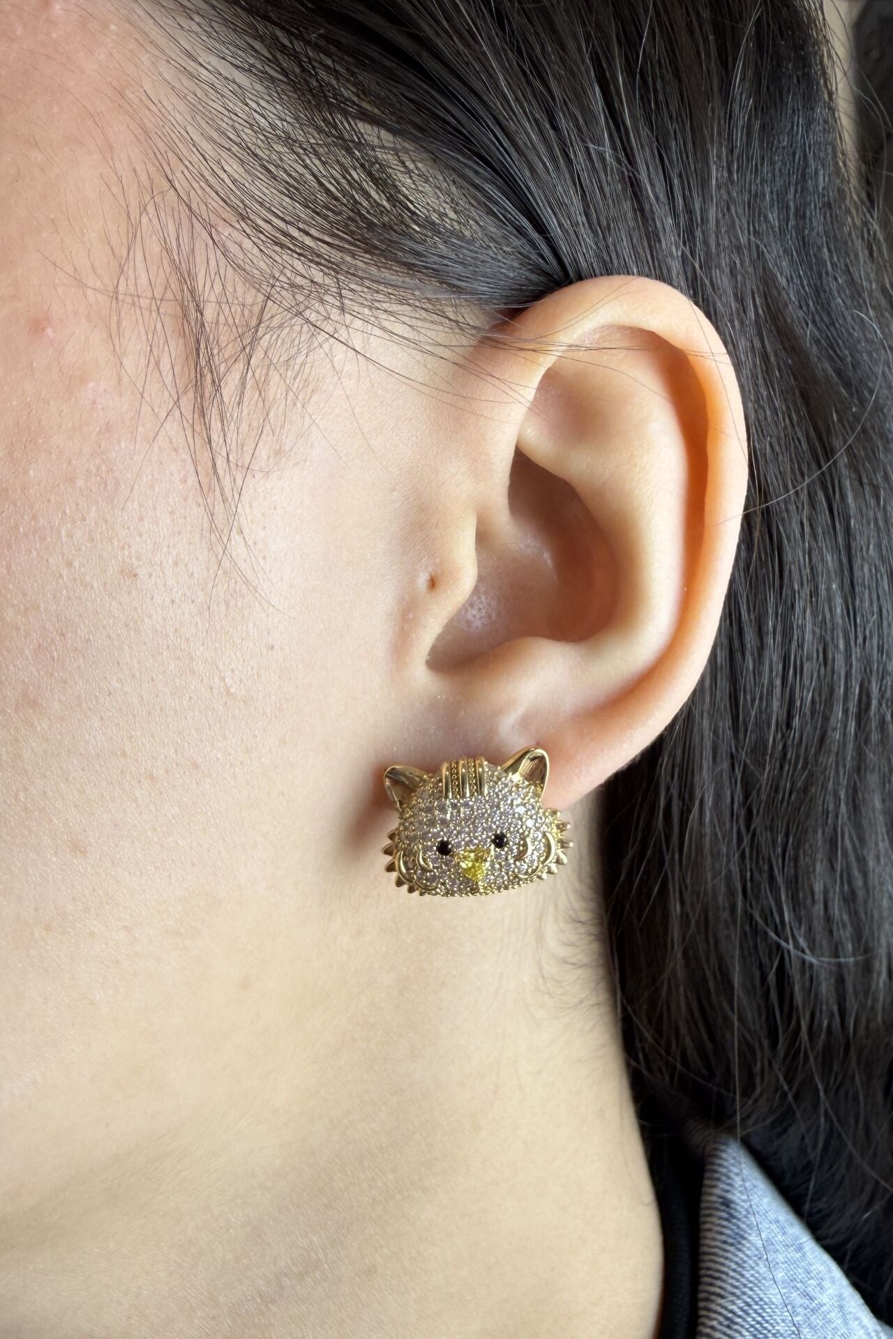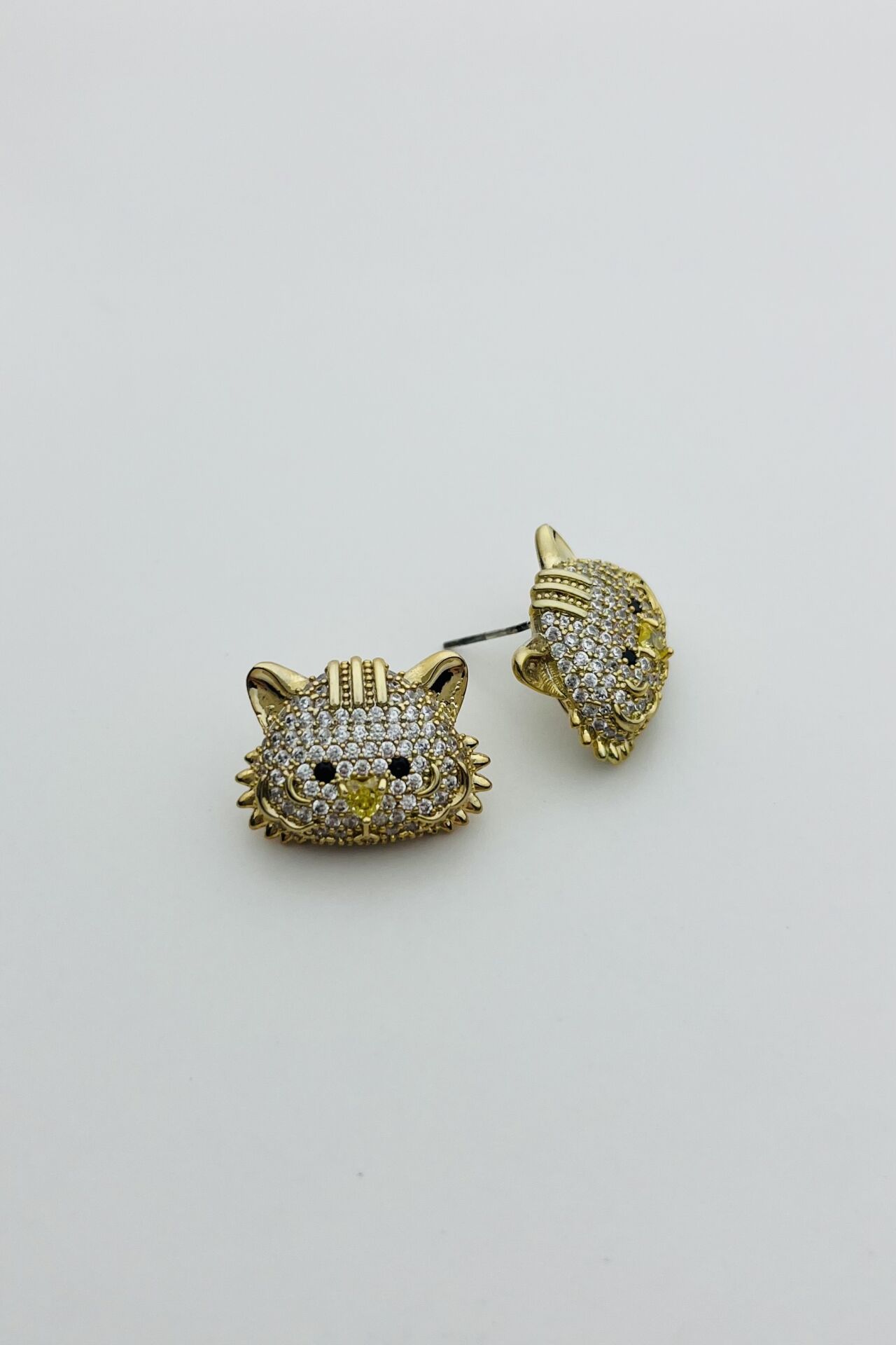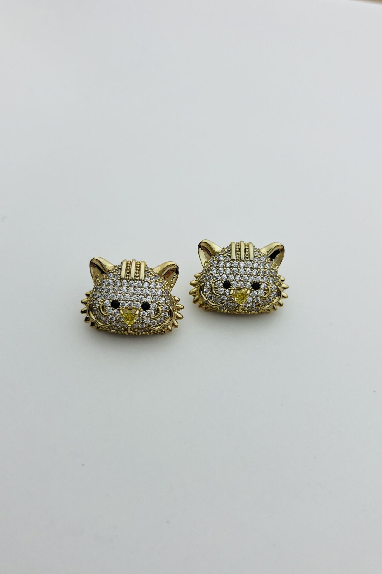 LvLv Gold Rengi Kaplan Model Zirkon Taşlı Özel Seri İğne Küpe