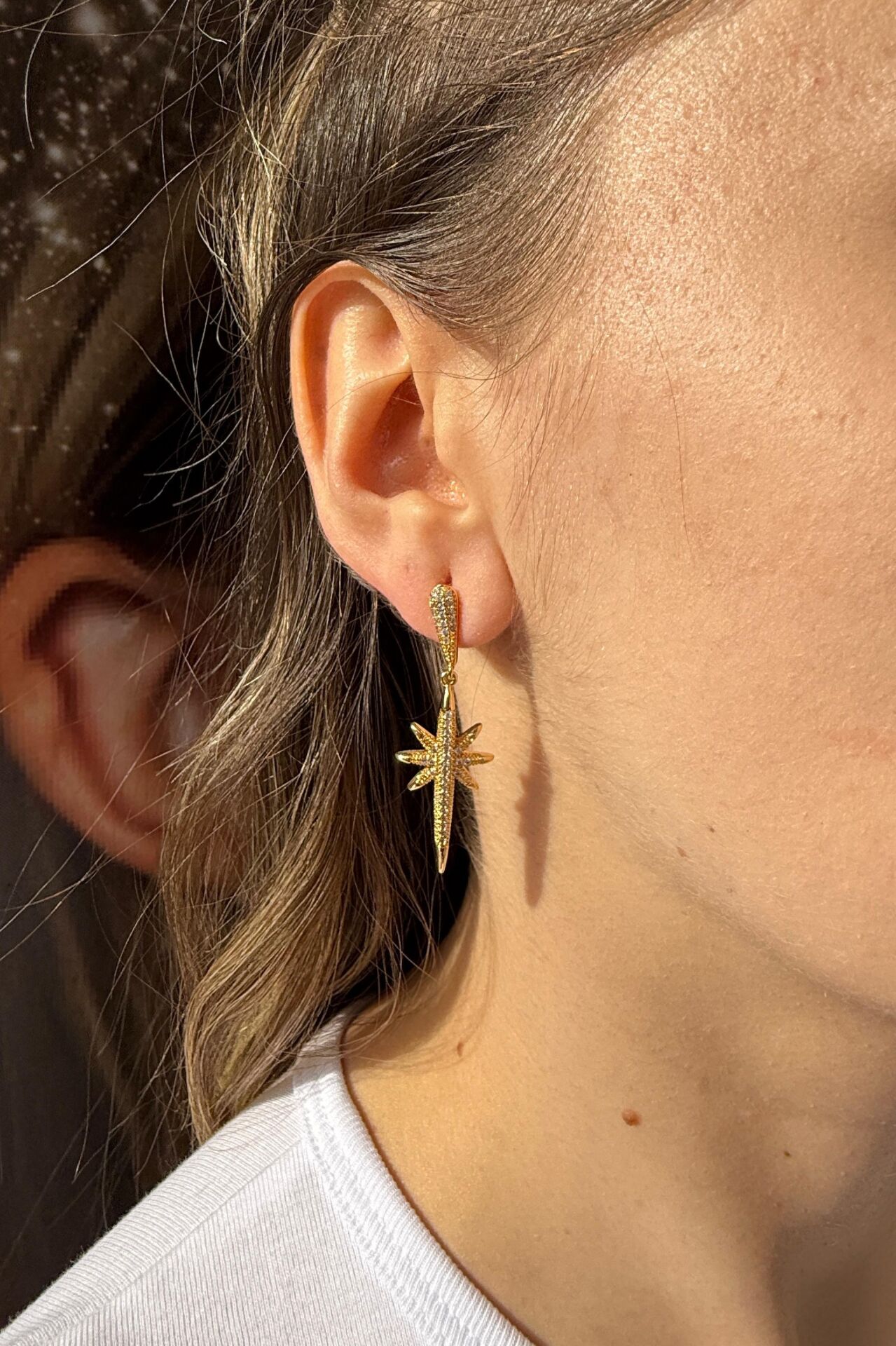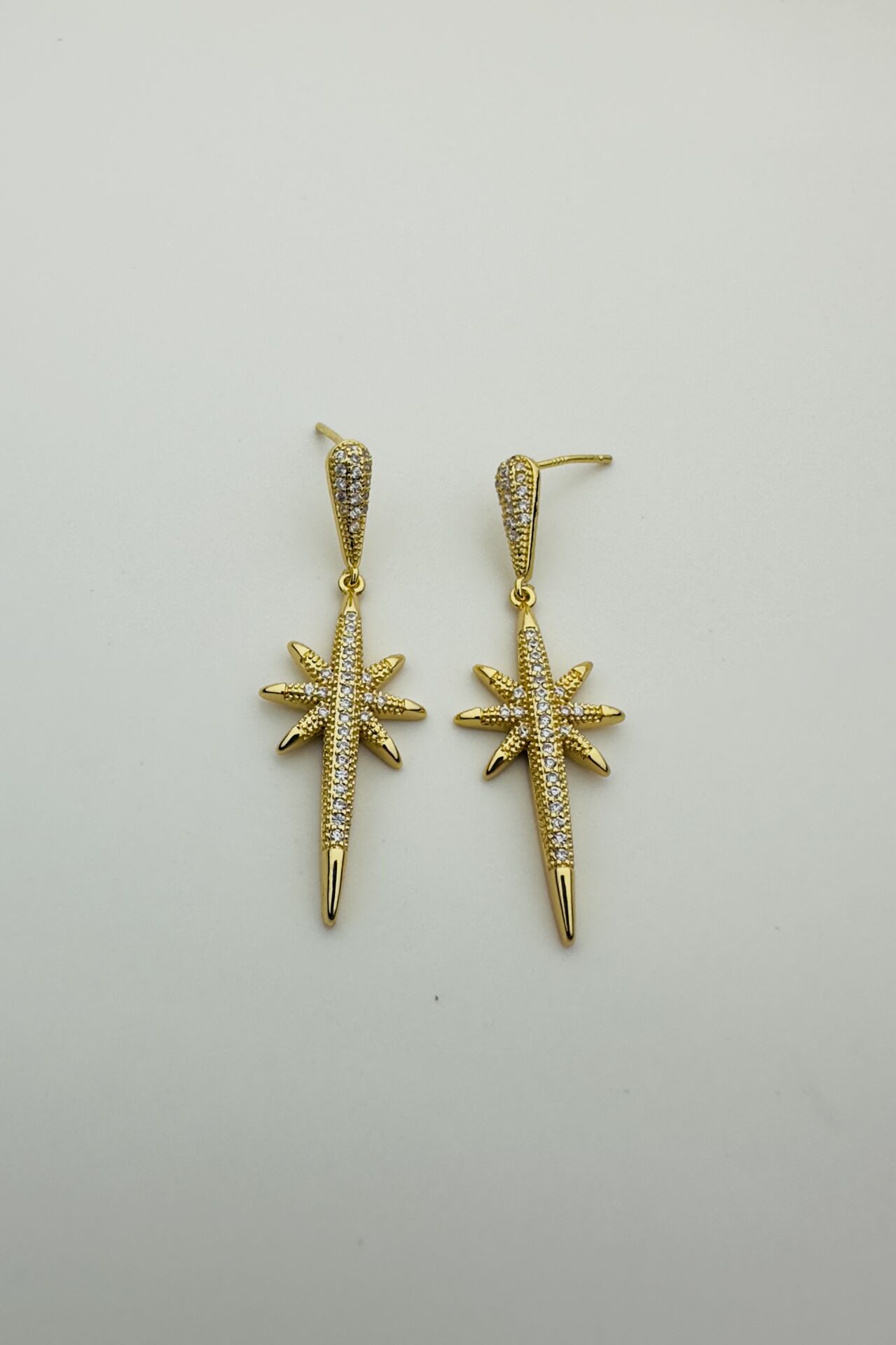LvLv Gold Rengi Kuzey Yıldızı Zirkon Taşlı Sallantılı İğne Küpe
