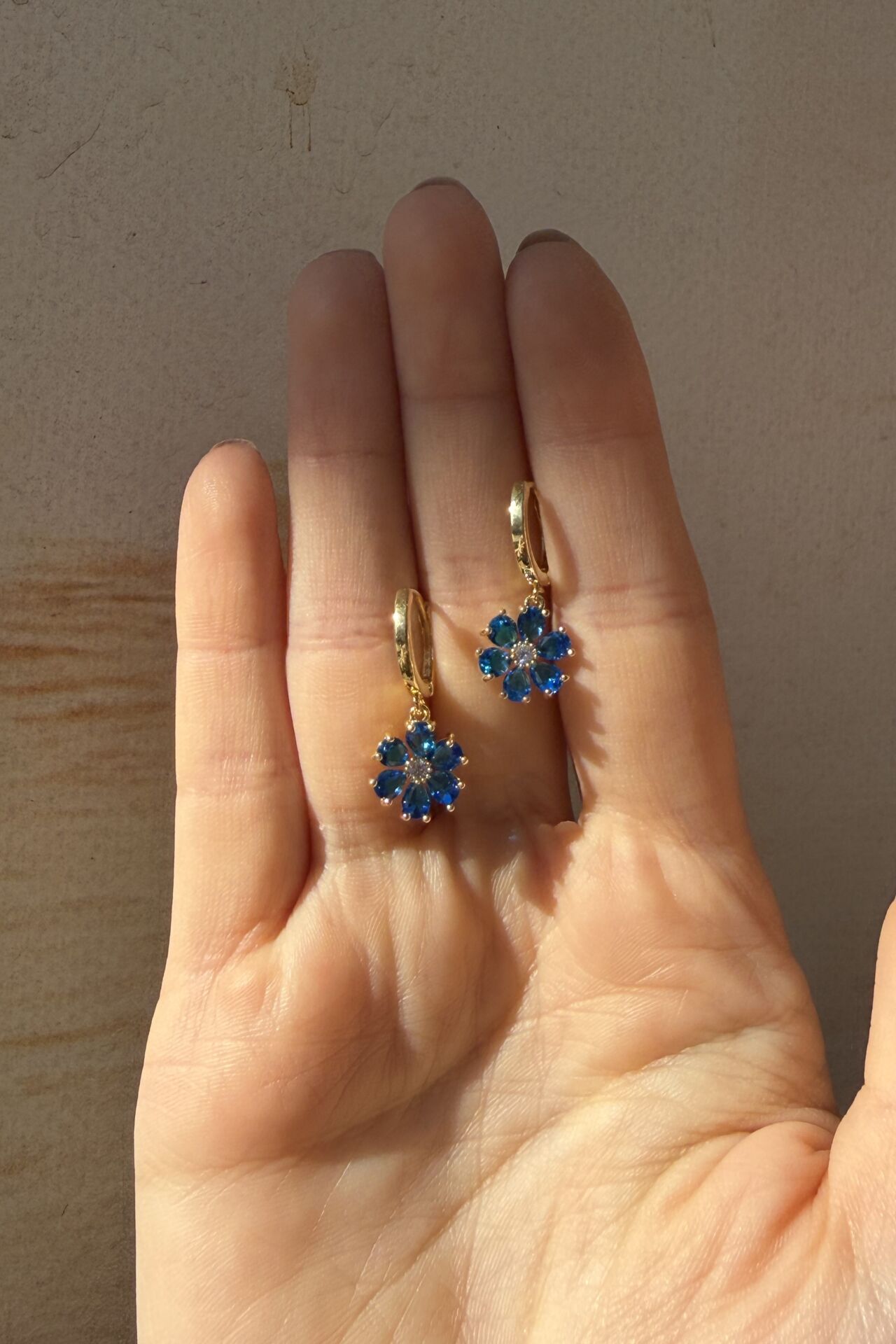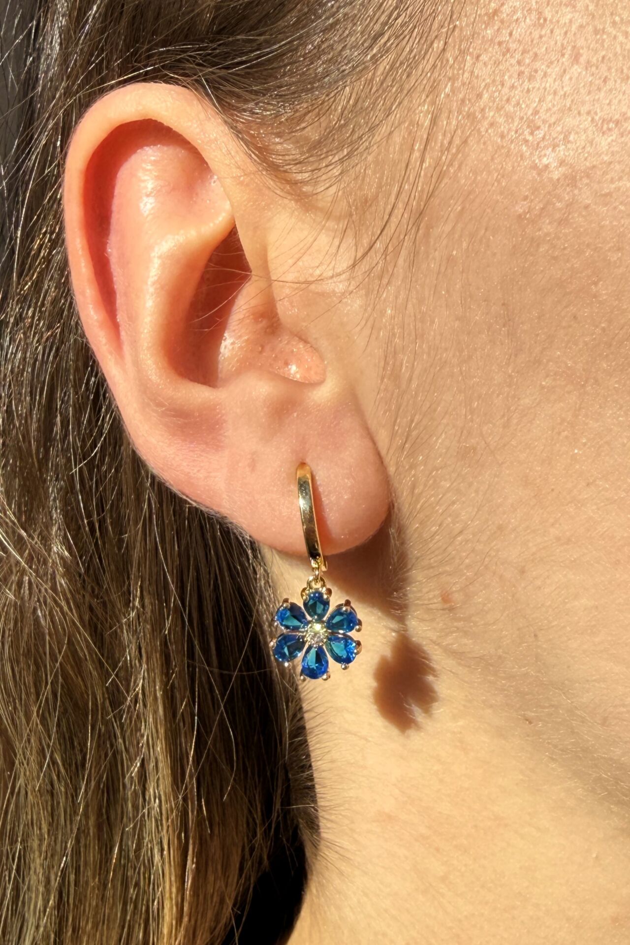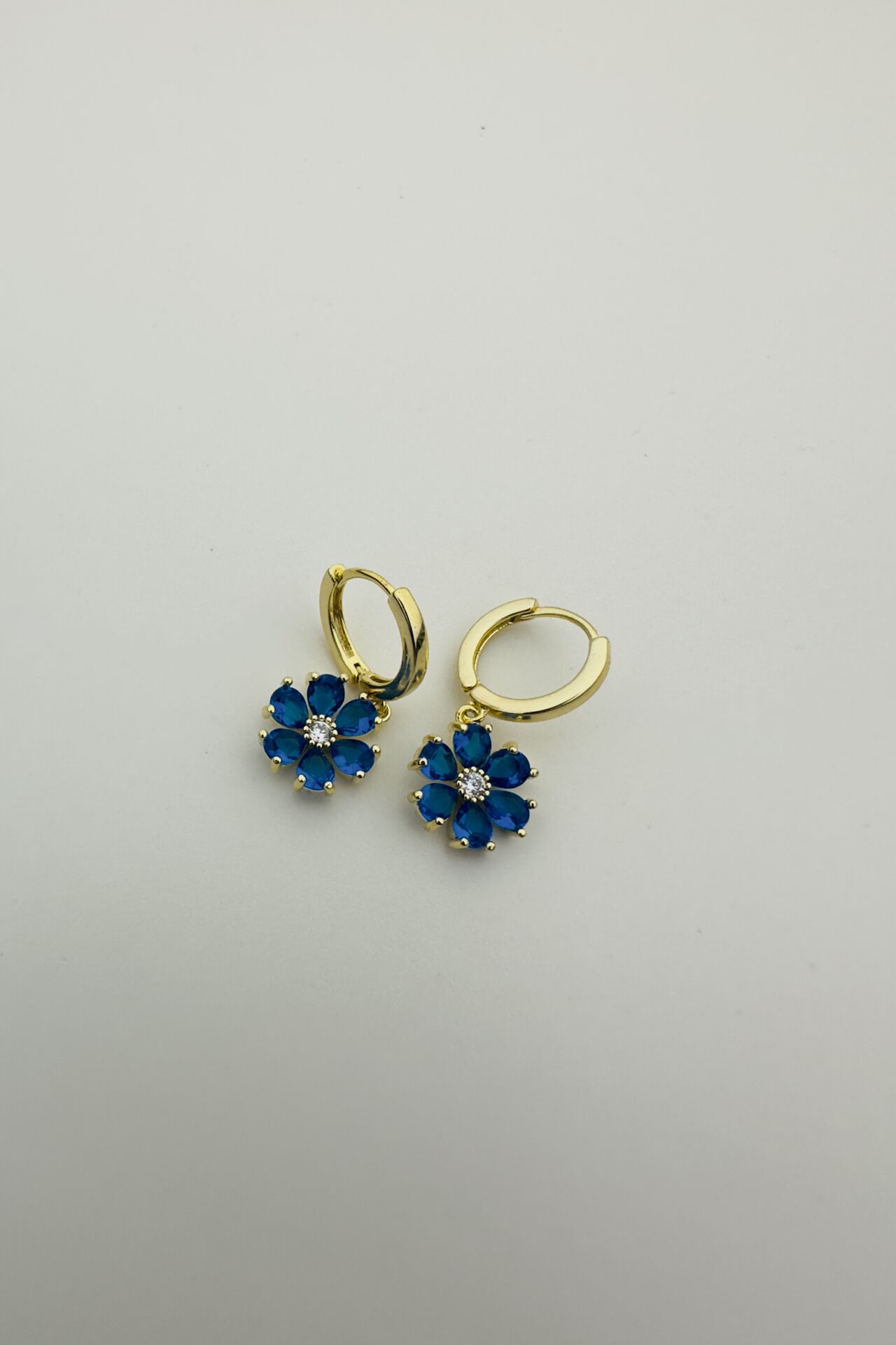 LvLv Gold Rengi Lacivert Taşlı Çiçek Model Sallantılı Halka Küpe