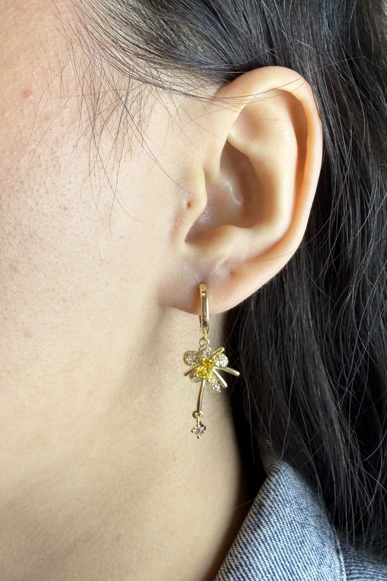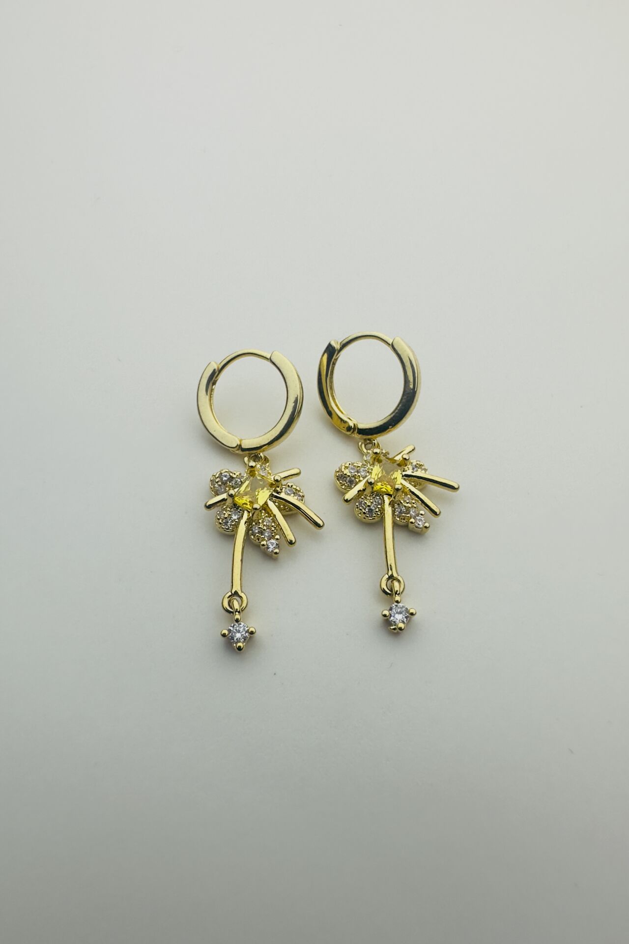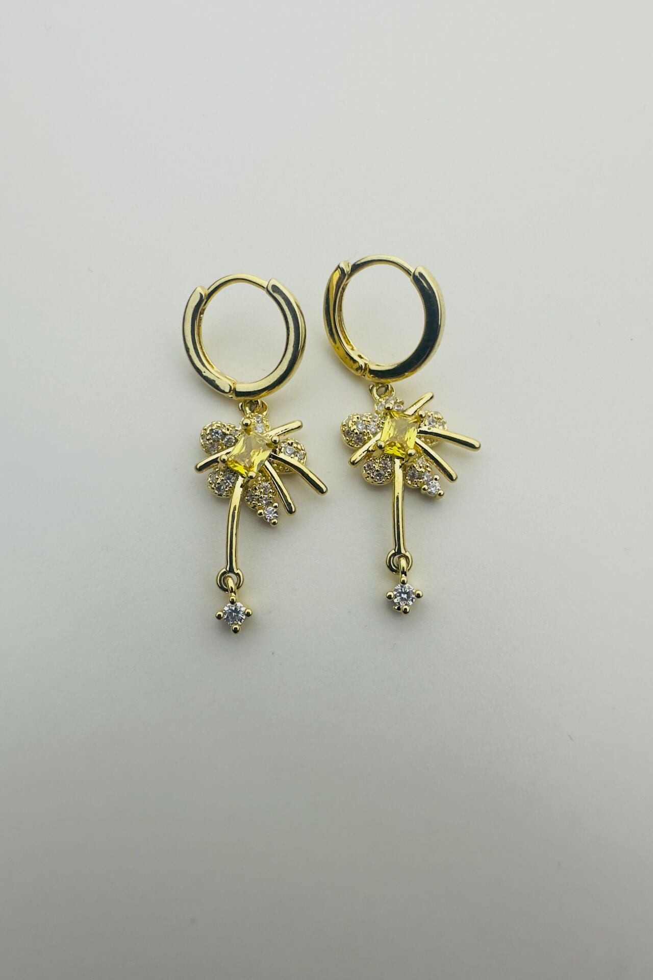 LvLv Gold Rengi Özel Tasarım Sarı Taşlı Sallantılı Halka Küpe