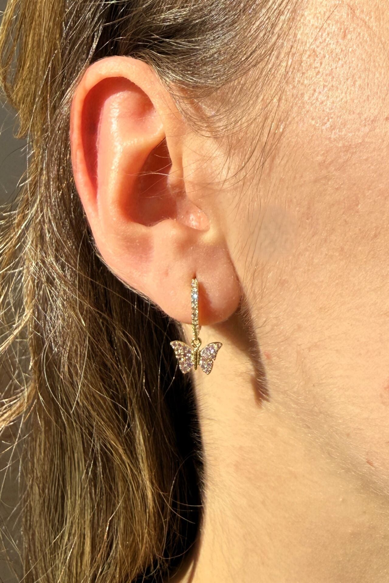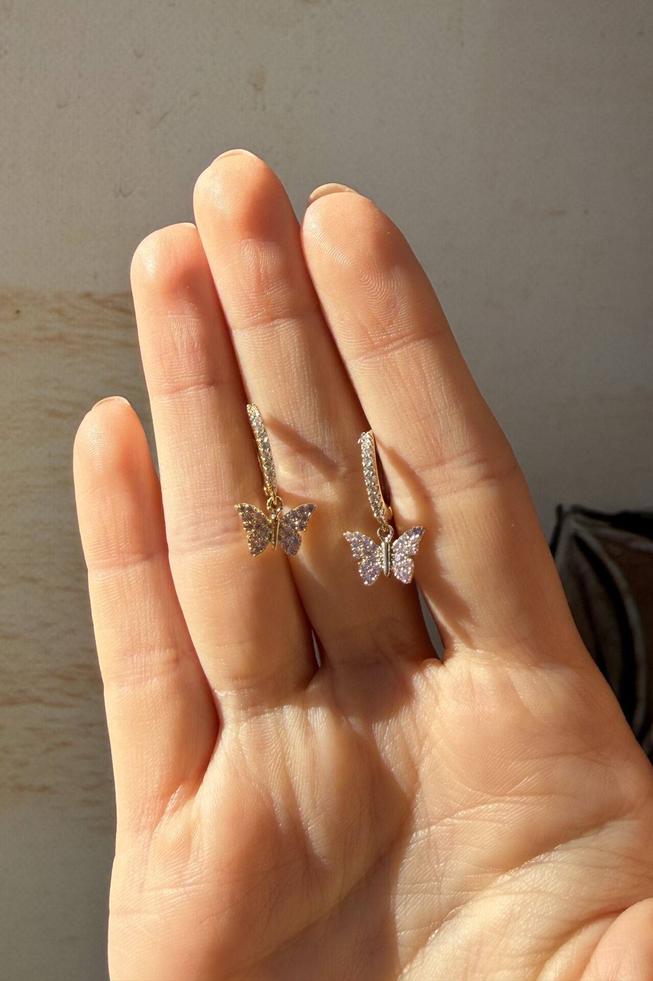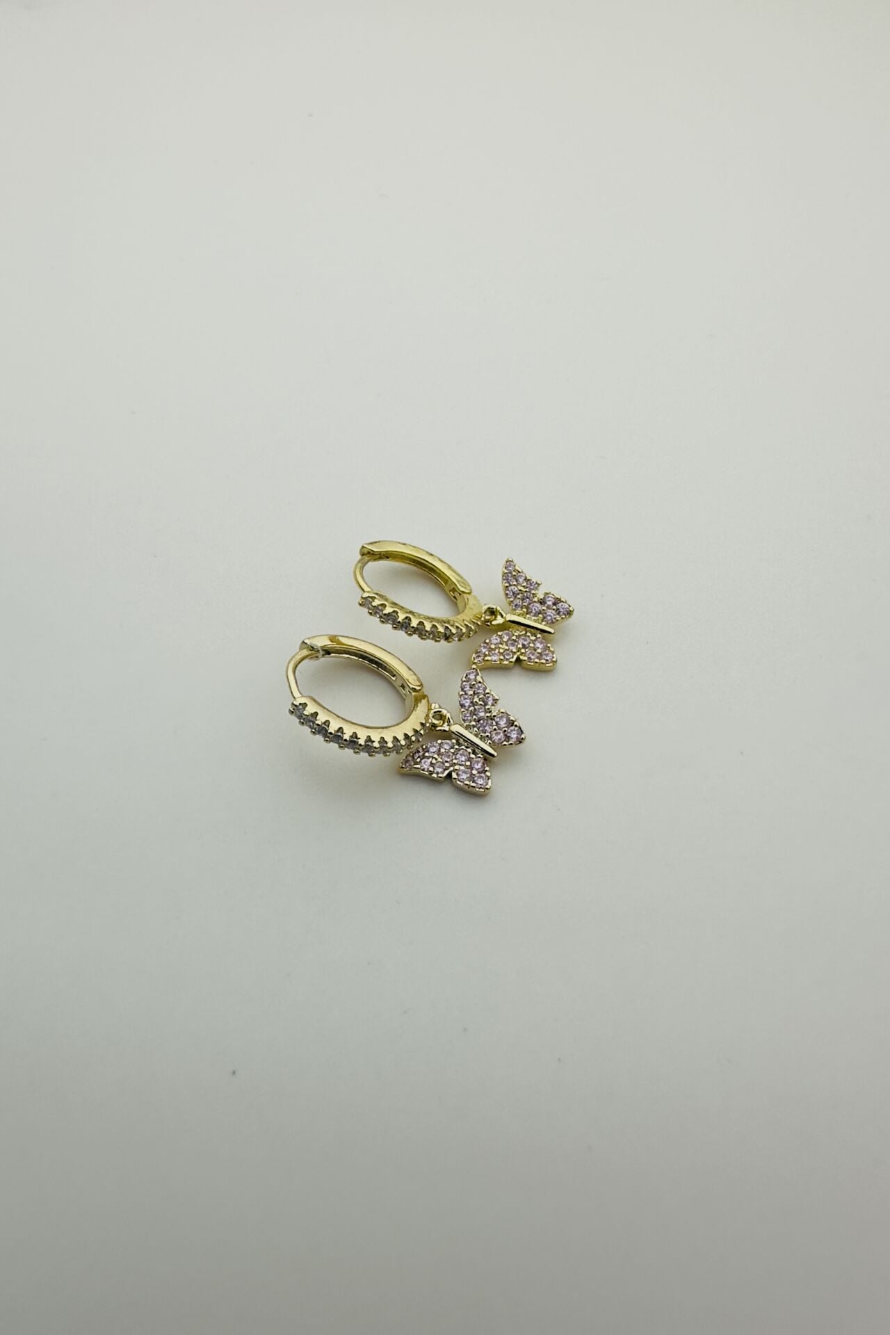 LvLv Gold Rengi Pembe Taşlı Kelebek Model Sallantılı Halka Küpe