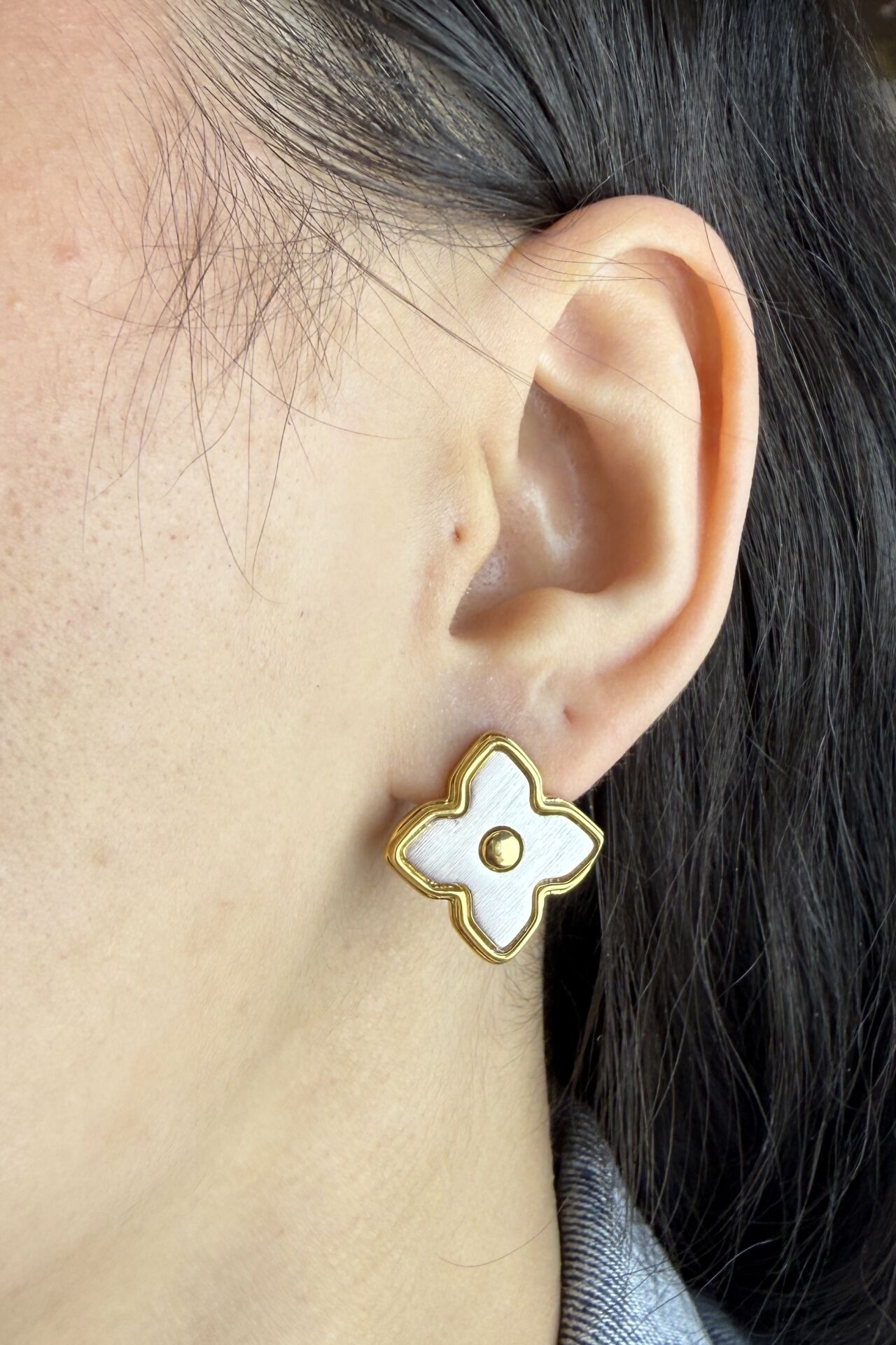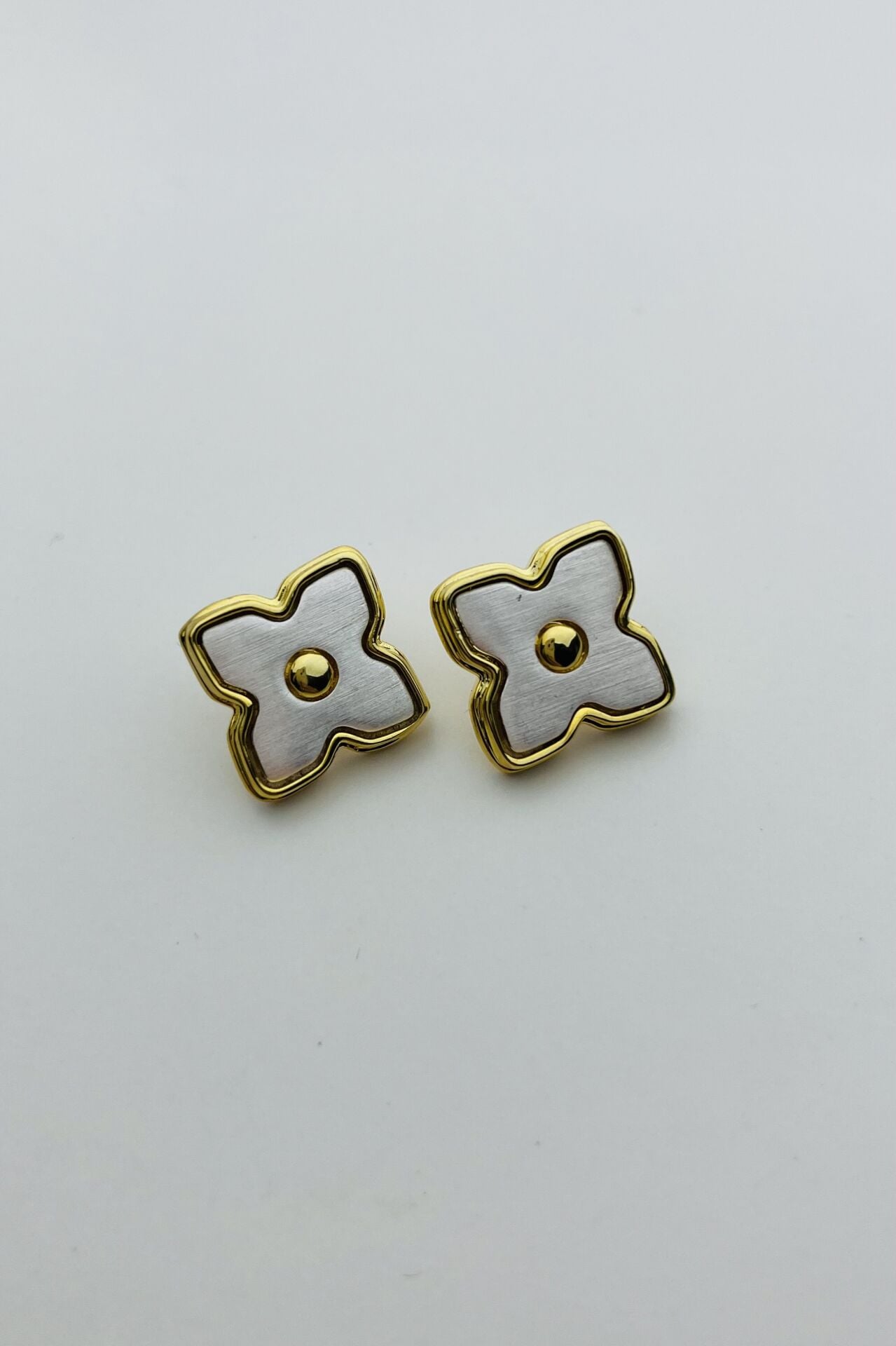 LvLv Gold Rengi Sedefli Yonca Model Tasarım İğne Küpe