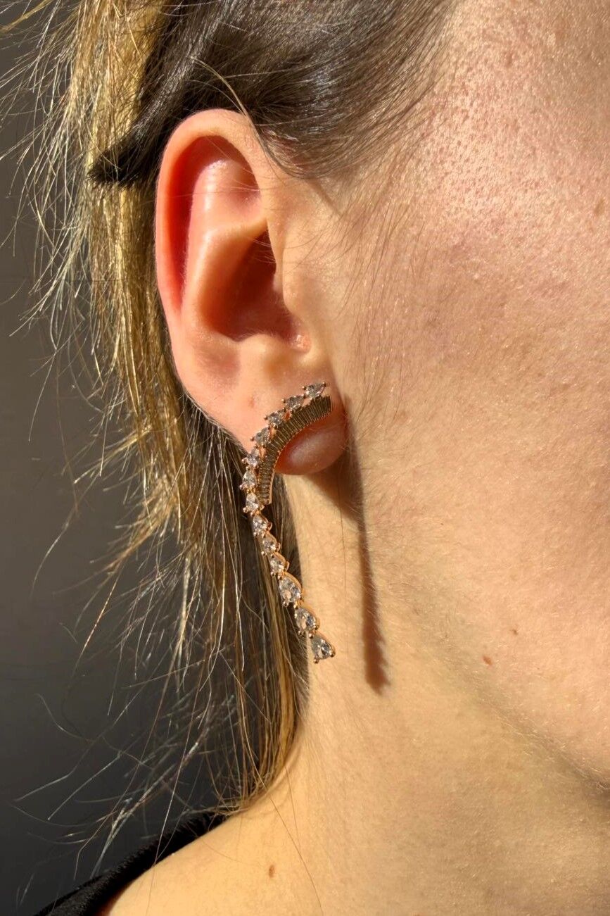 LvLv Gold Rengi Sıralı Damla Taşlı Plaka Küpe