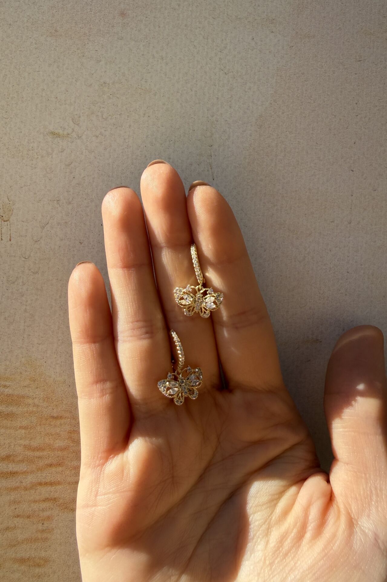 LvLv Gold Rengi Zirkon Taşlı Kelebek Model Sallantılı Halka Küpe