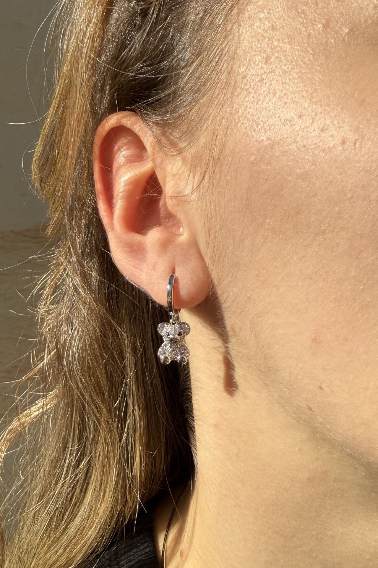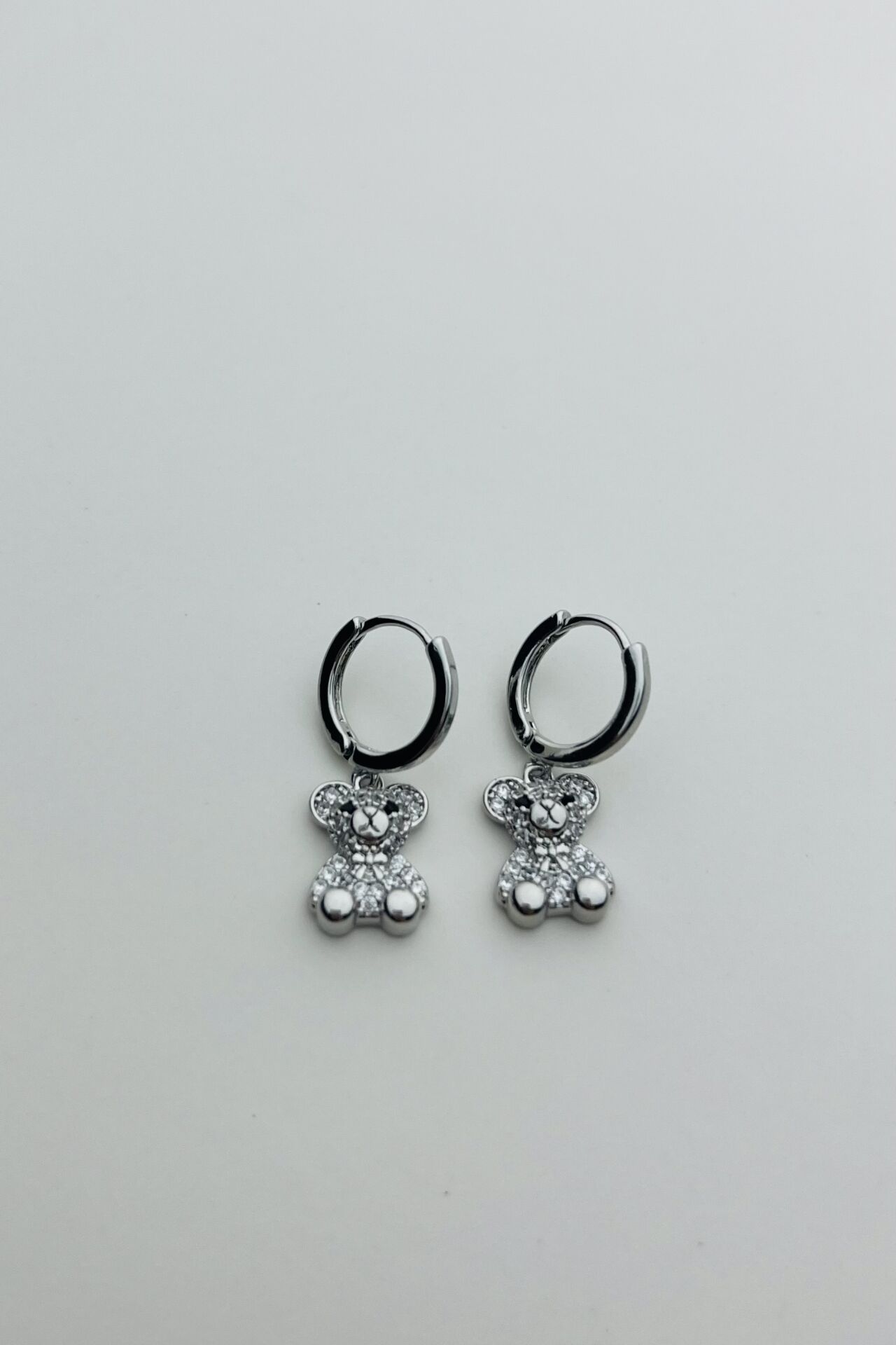 LvLv Gümüş Rengi Ayıcık Model Sallantılı Halka Küpe