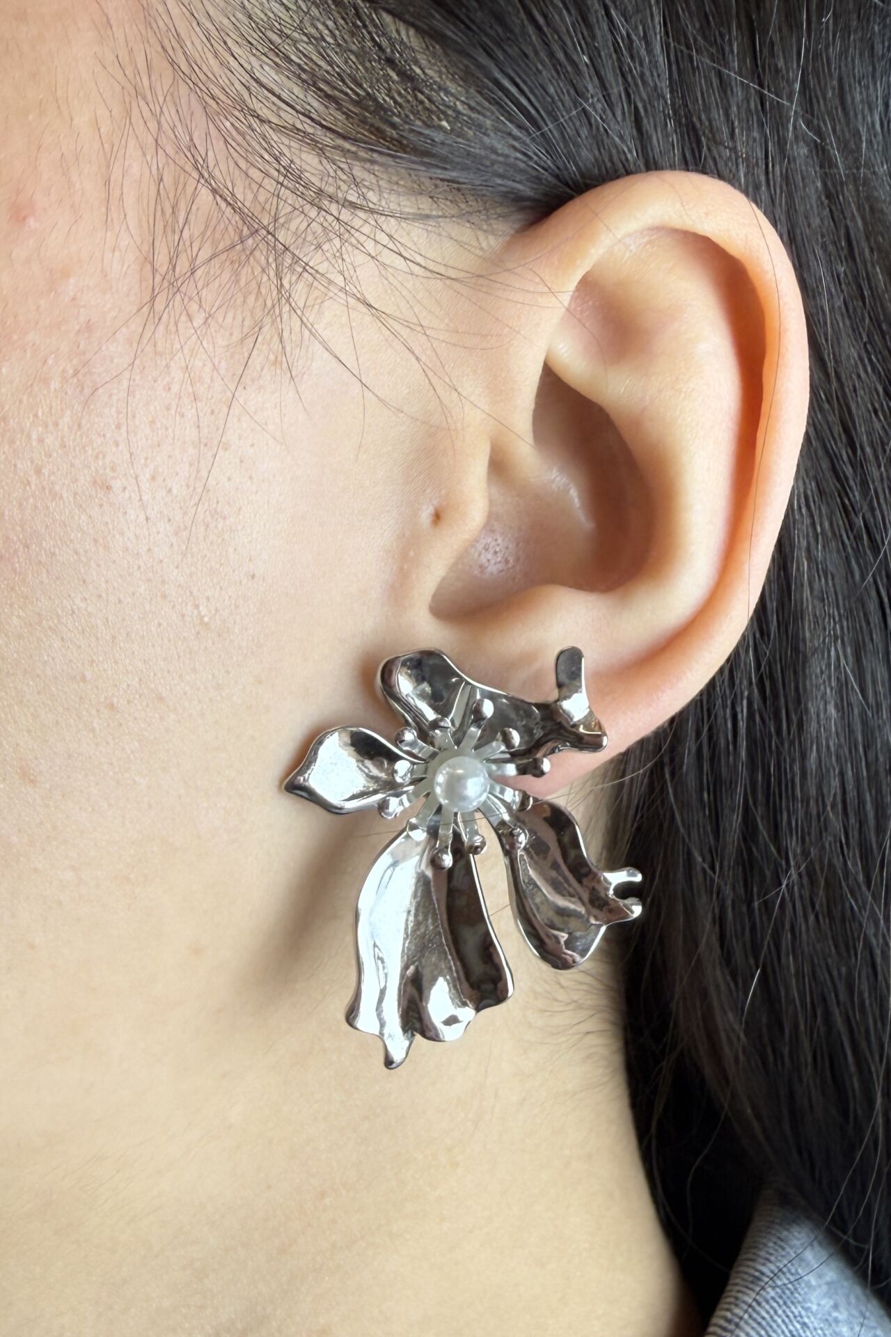 LvLv Gümüş Rengi İncili Çiçek Desenli Çelik Plaka Küpe, zarif tasarımıyla her an şıklığınızı tamamlar. Dayanıklı çelik plakası ve ince işçilikle oluşturulan inci detayları, modern ve klasik tarzı bir araya getiriyor. Hafif yapısıyla konfor sağlar, özel günler ve günlük kullanım için ideal.