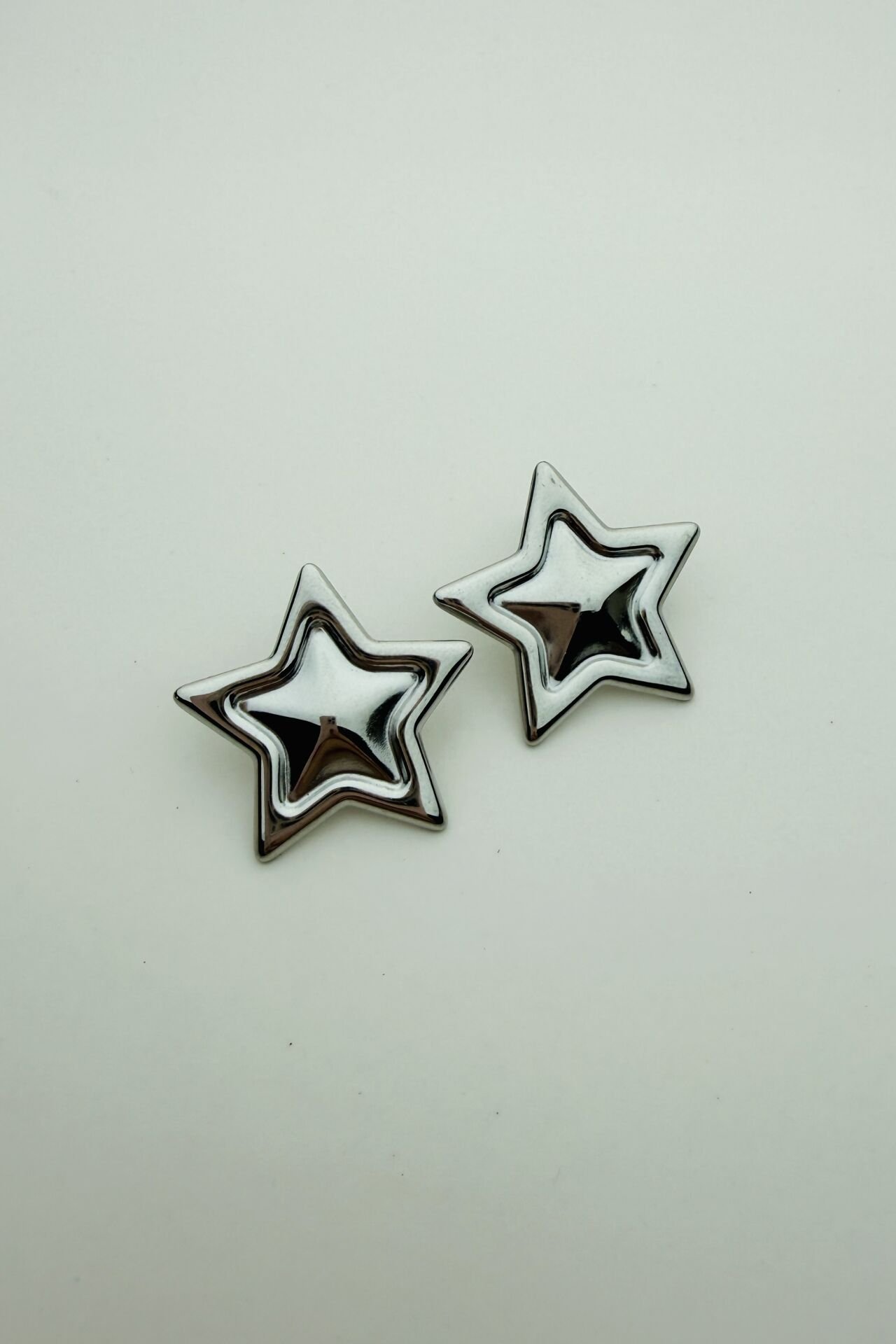 LvLv Gümüş Rengi Kabartmalı Yıldız Şekilli Çelik Plaka Küpe