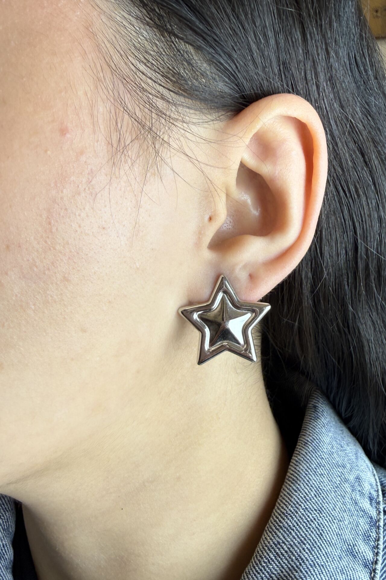 LvLv Gümüş Rengi Kabartmalı Yıldız Şekilli Çelik Plaka Küpe, şık ve modern tasarımıyla dikkat çekiyor. Dayanıklı çelik malzemesi uzun ömür sağlar. Kabartmalı yıldız deseni, her kıyafete zarif bir detay katar. Hem günlük hem özel anlar için ideal bir takı seçeneğidir.