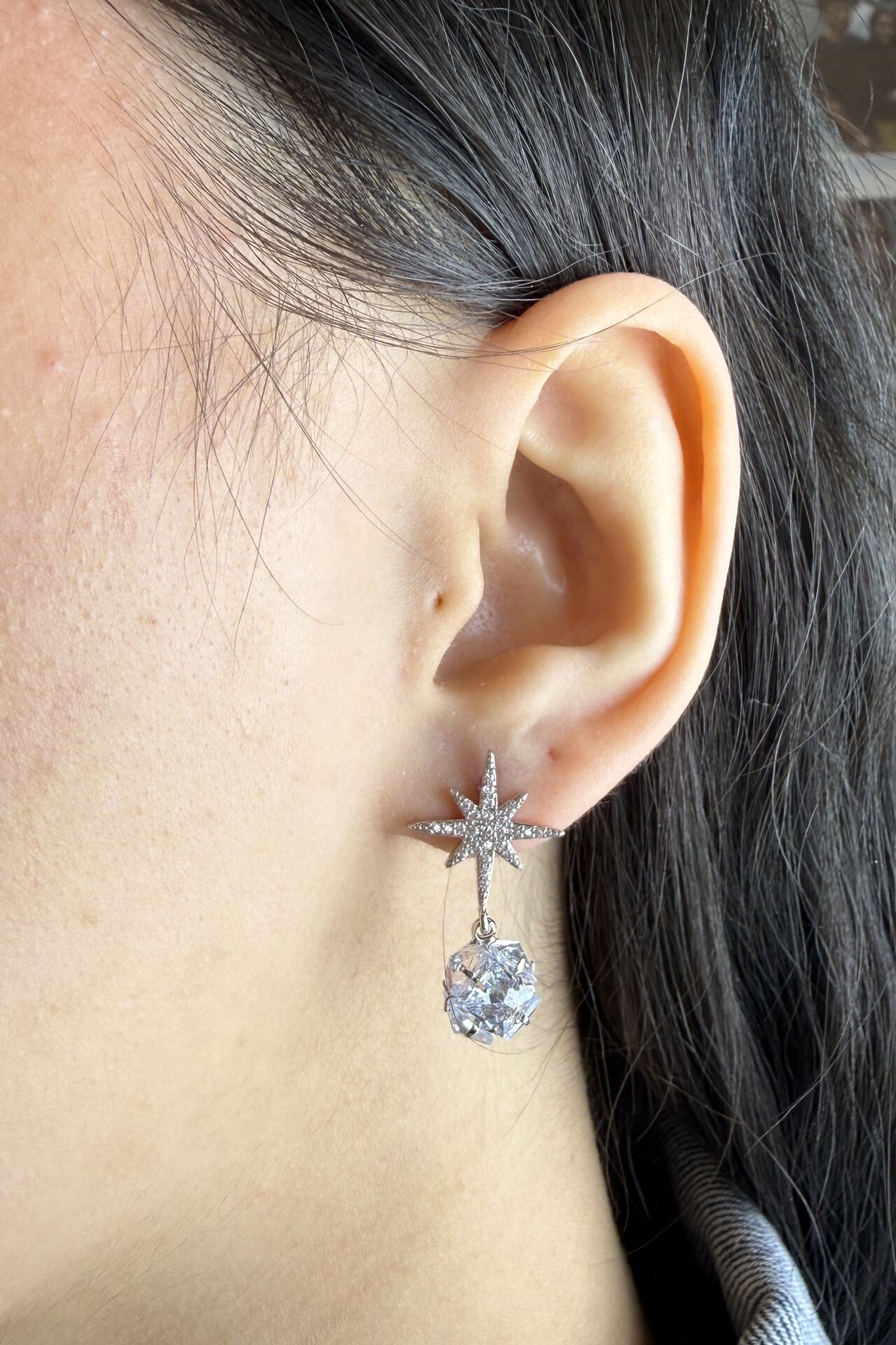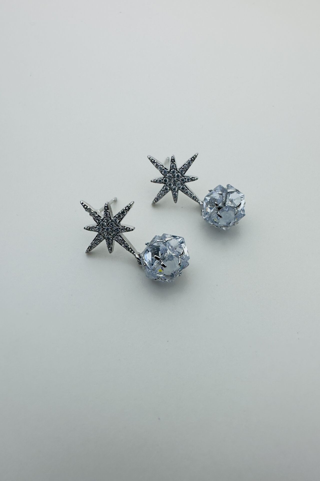 LvLv Gümüş Rengi Parlak Taş Sallantılı Kuzey Yıldızı Model Tasarım İğne Küpe