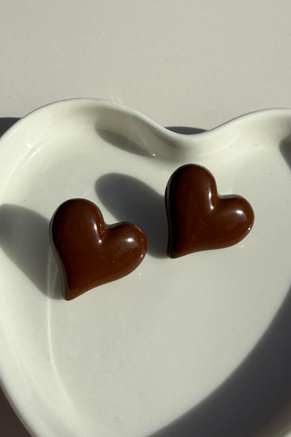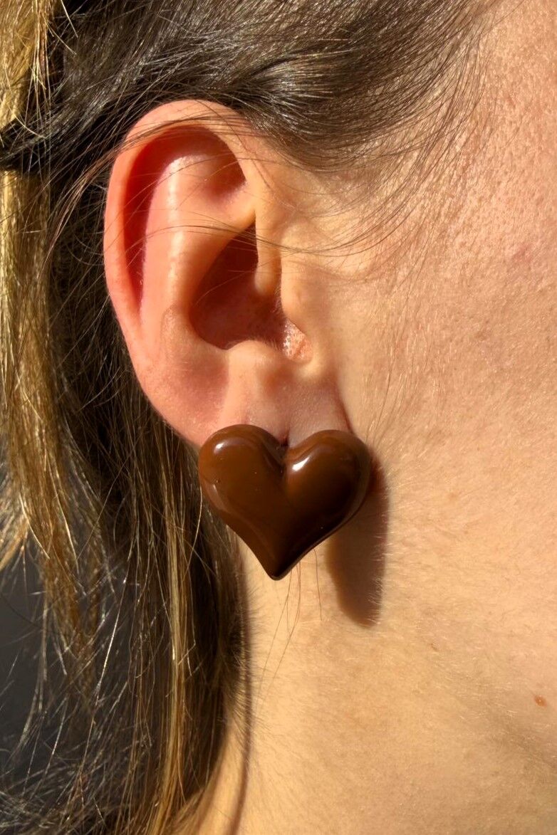 LvLv Kahverengi Kalp Şeklinde Bombeli İğne Küpe
