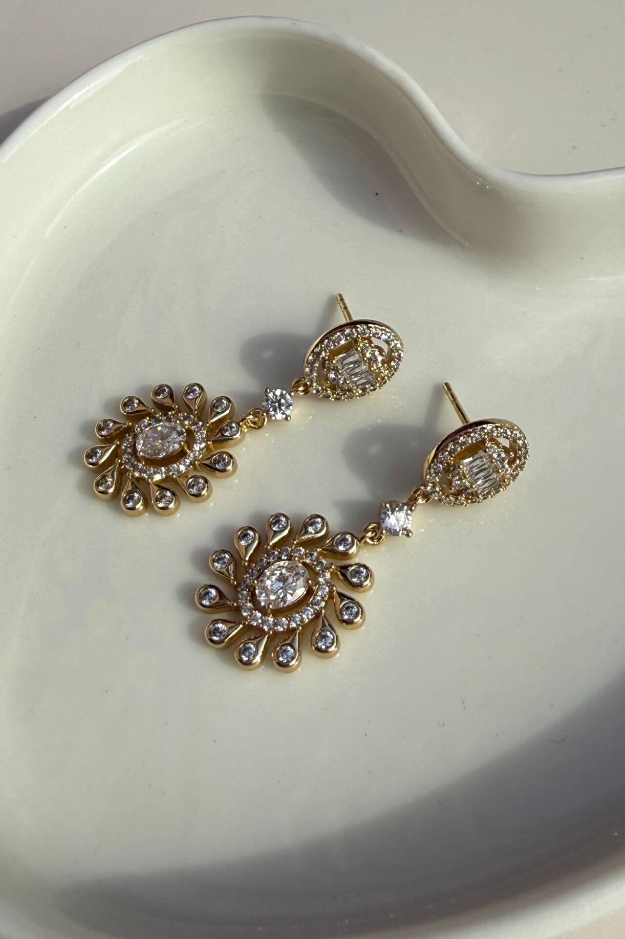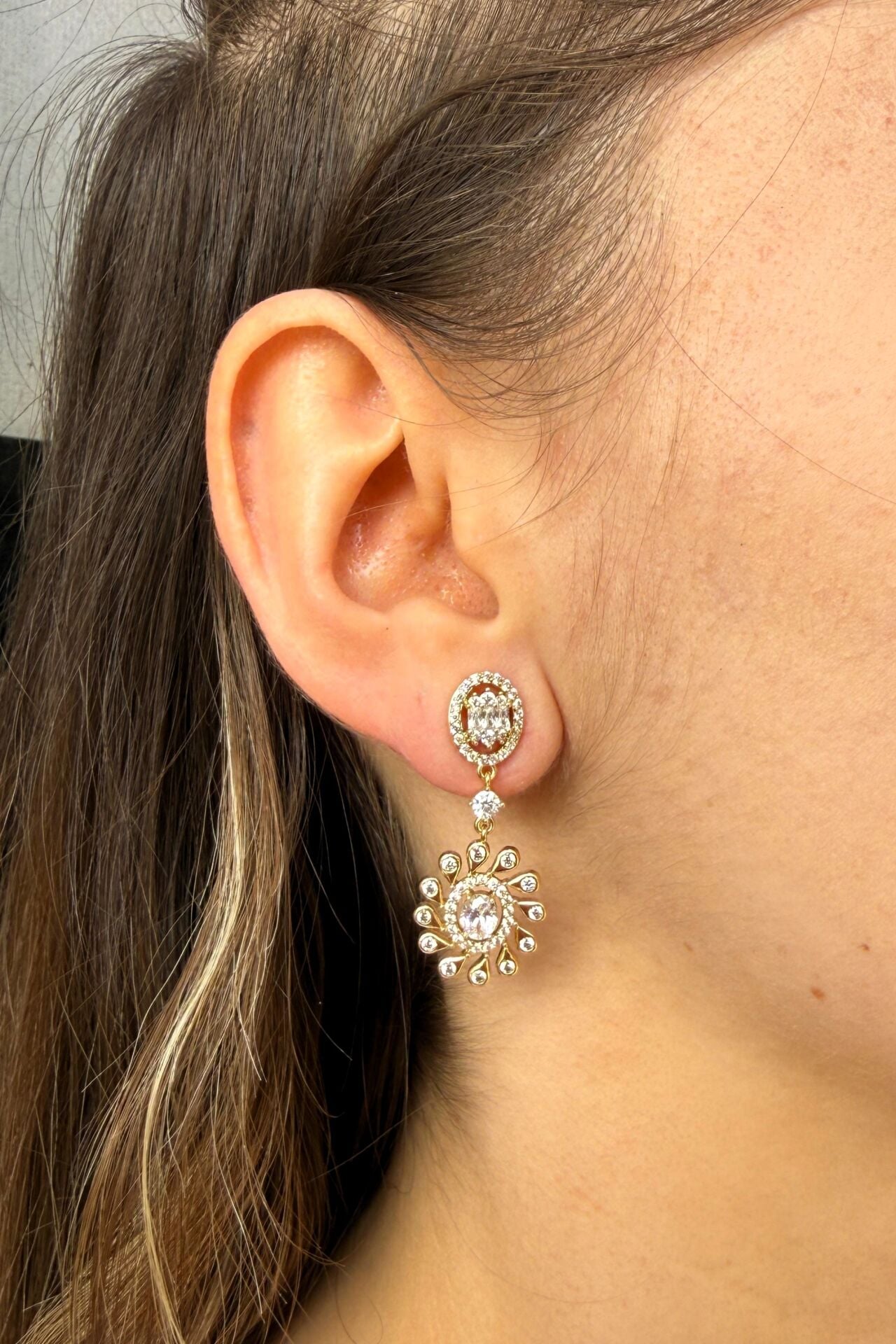 LvLv XP Gold Rengi Baget Taşlı Spiral Model Sallantılı İğne Küpe