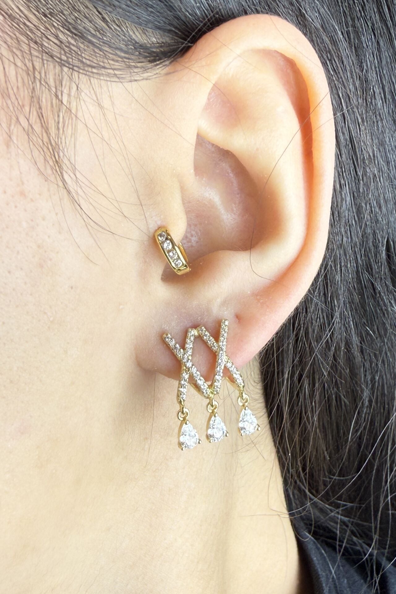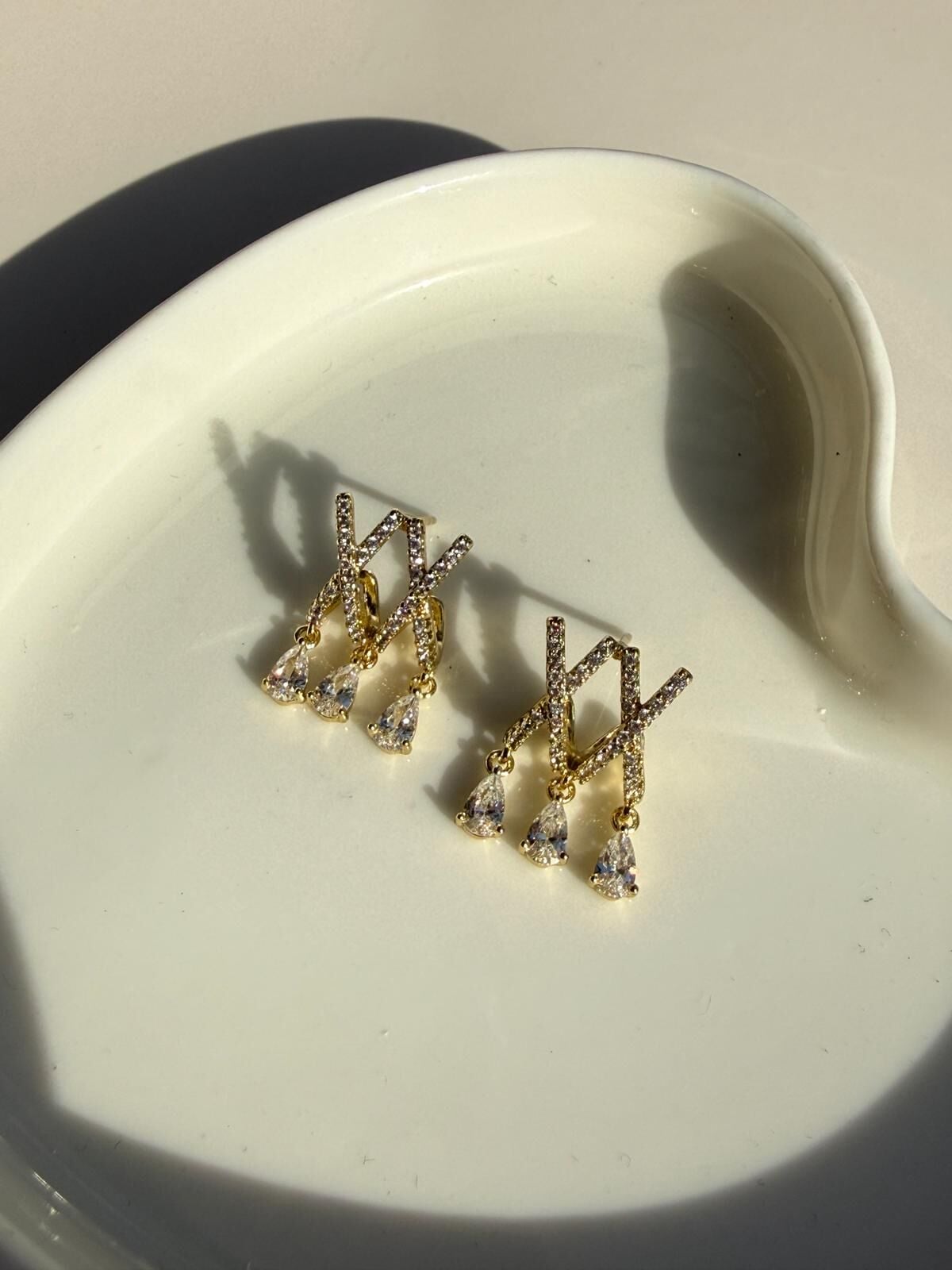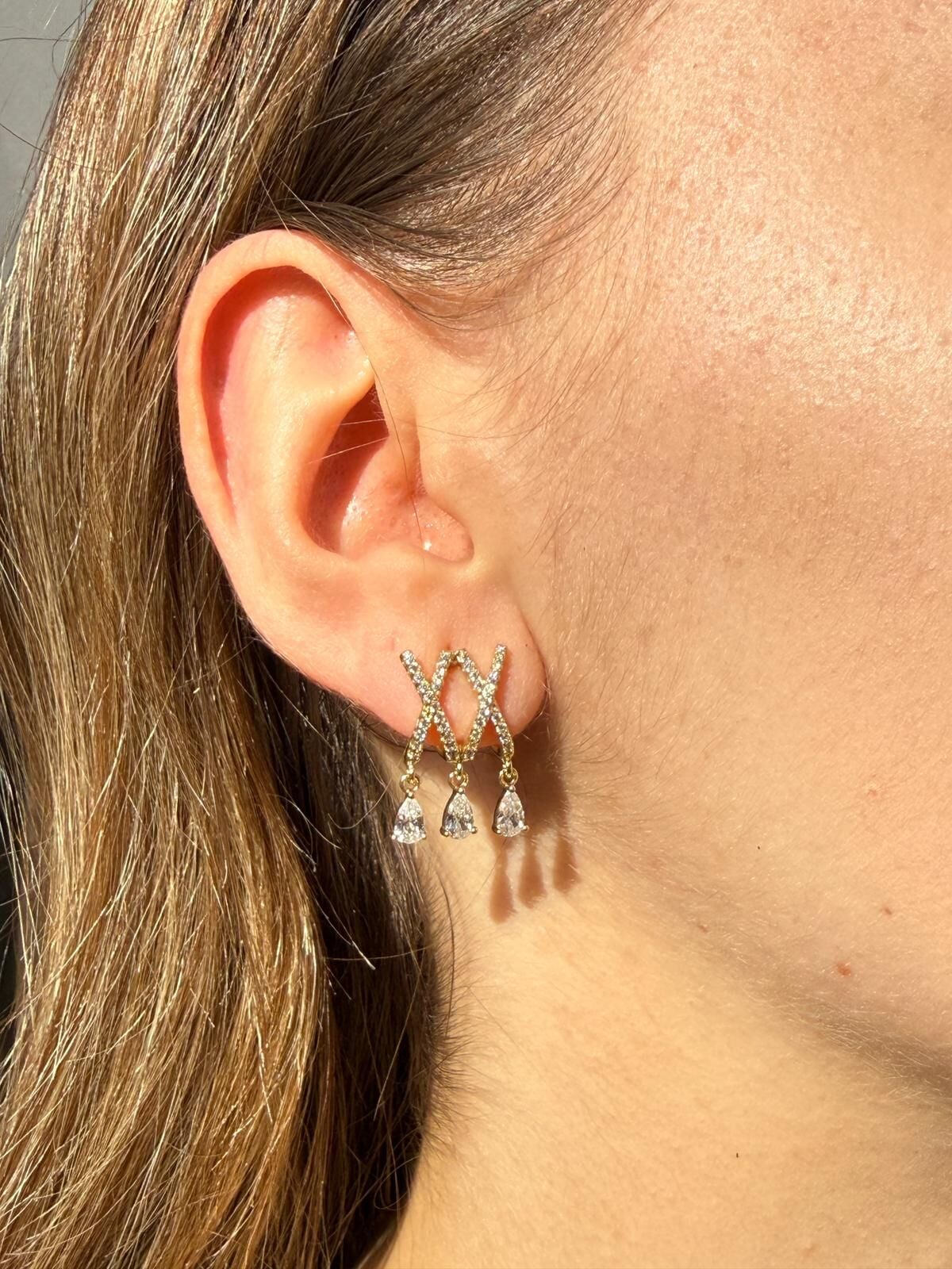 LvLv XP Gold Rengi Damla Taş Sallantılı Çoklu Gürünümlü İğne Küpe