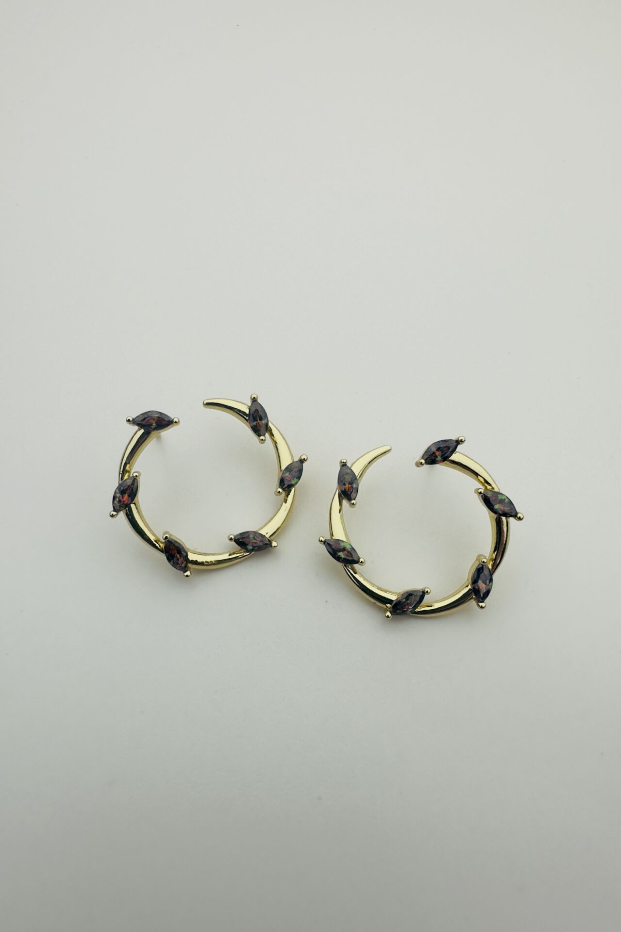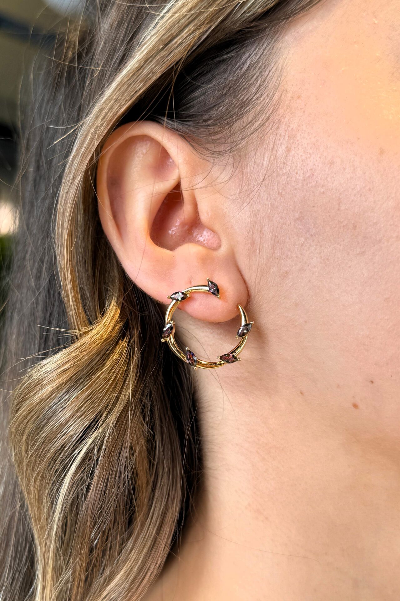 LvLv XP Gold Rengi Mor Taş Detaylı Tasarım C Küpe