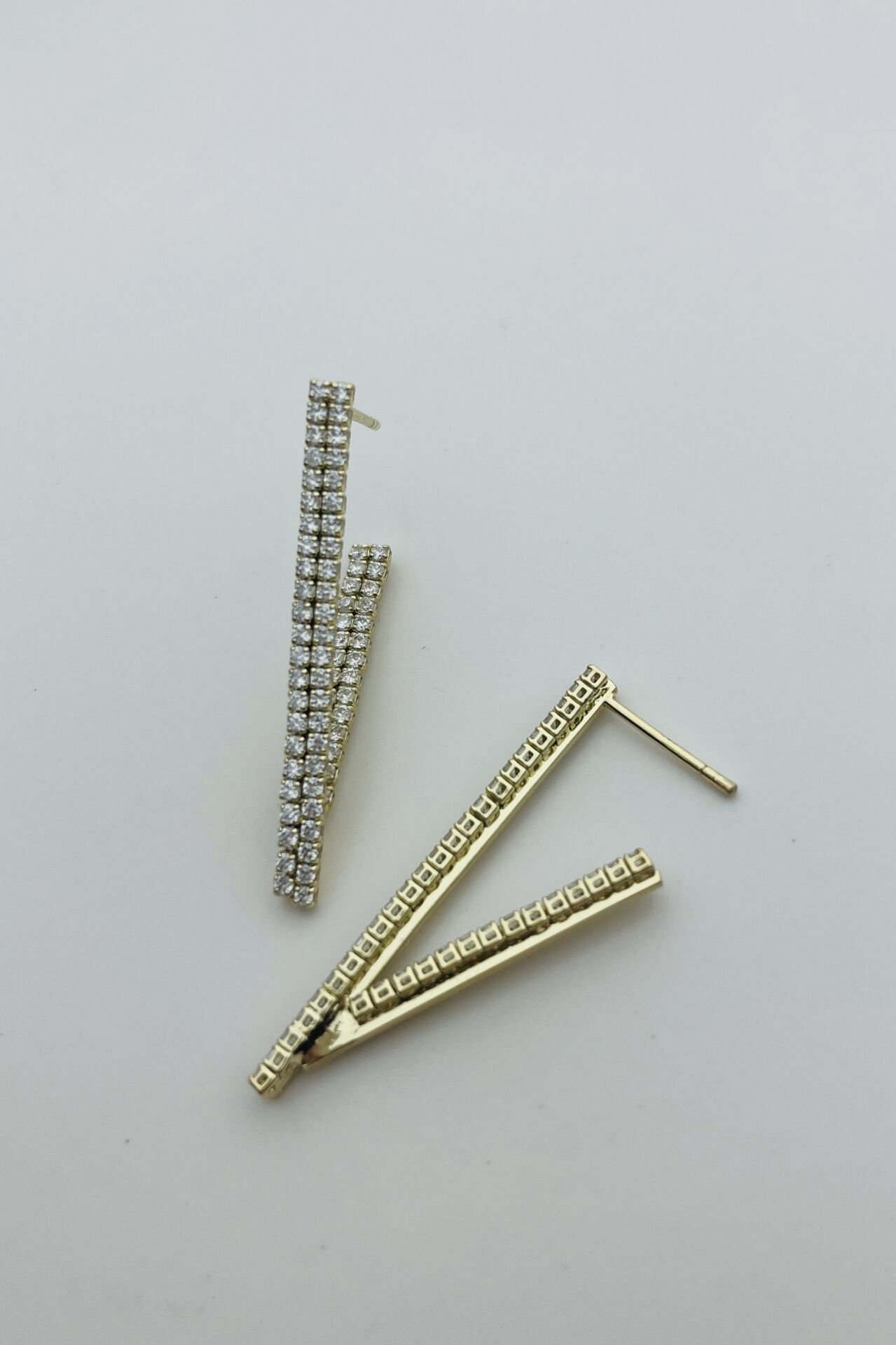 LvLv XP Gold Rengi Zirkon Taşlı Üçgen Tasarım İğne Küpe