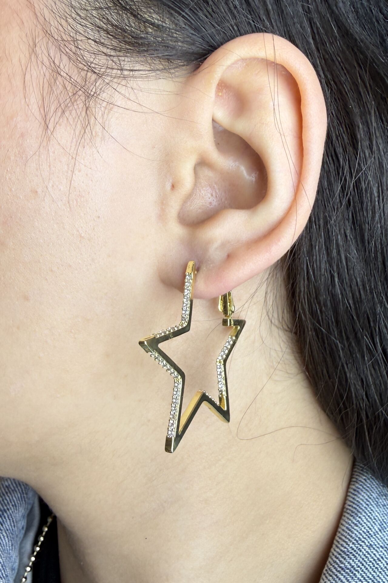 LvLv XP Gold Rengi Zirkon Taşlı Yıldız Şekil Halka Küpe