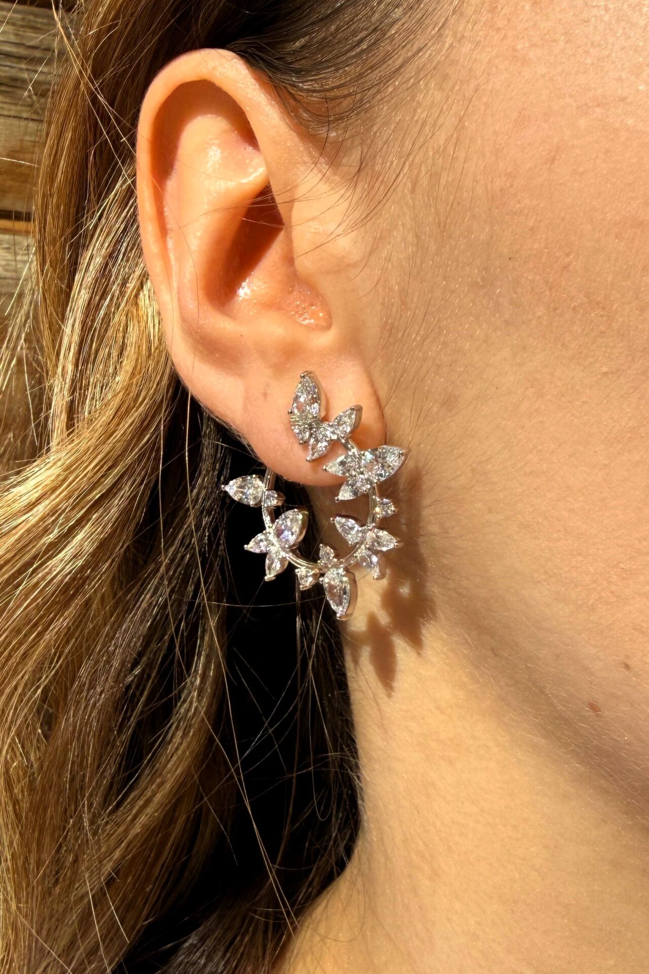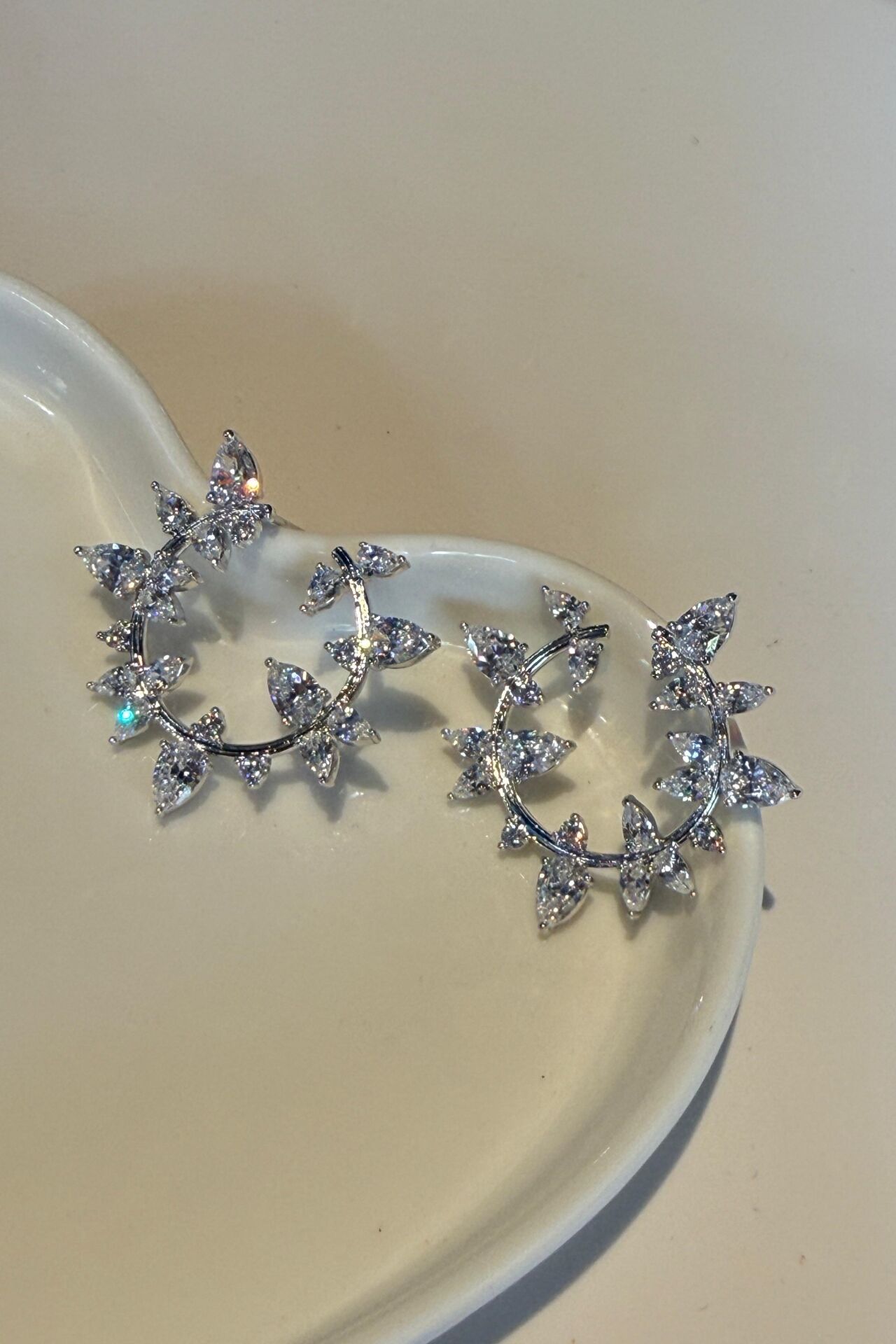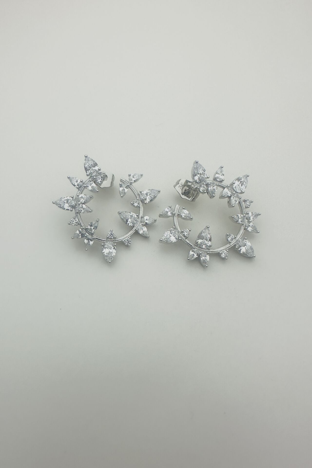 LvLv XP Gümüş Rengi Parlak Damla Taşlı Kıvrımlı İğne Küpe