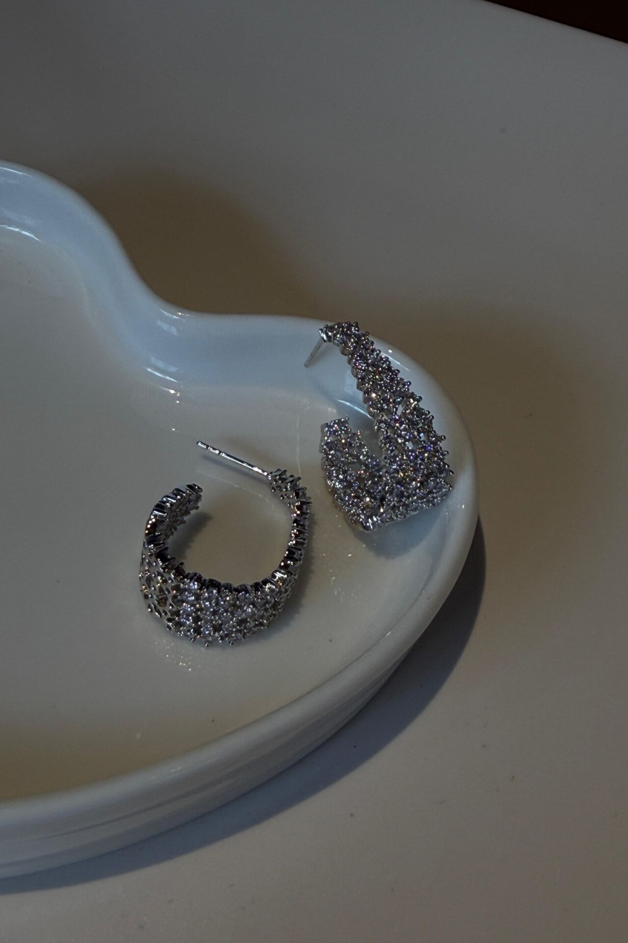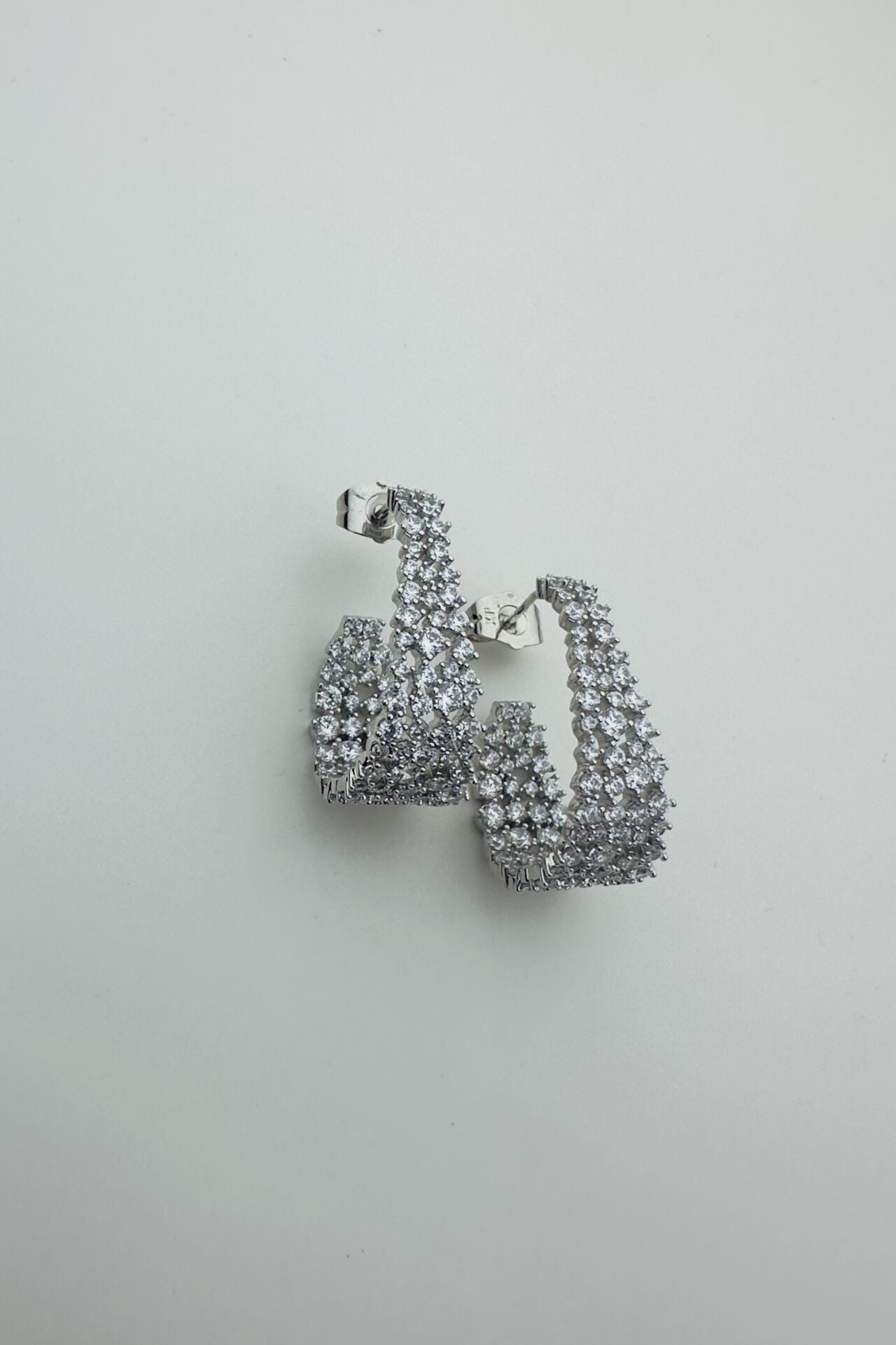 LvLv XP Gümüş Rengi Parlak Zirkon Taşlı Oval İğne Küpe