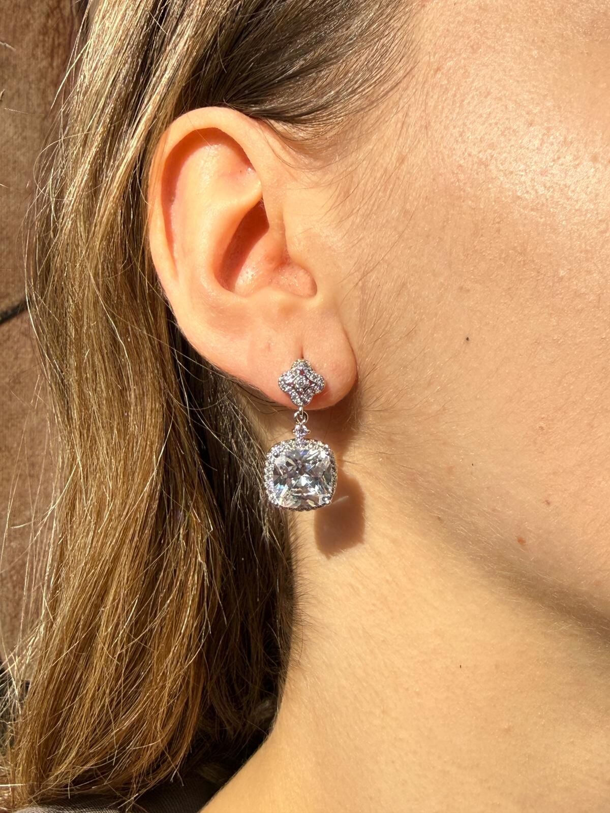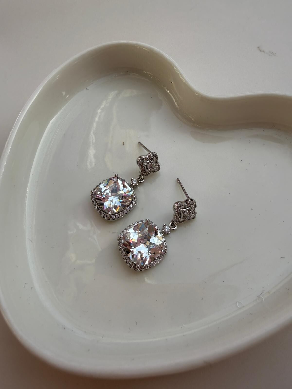 LvLv XP Gümüş Rengi Parlak Zirkon Taşlı Tasarım İğne Küpe