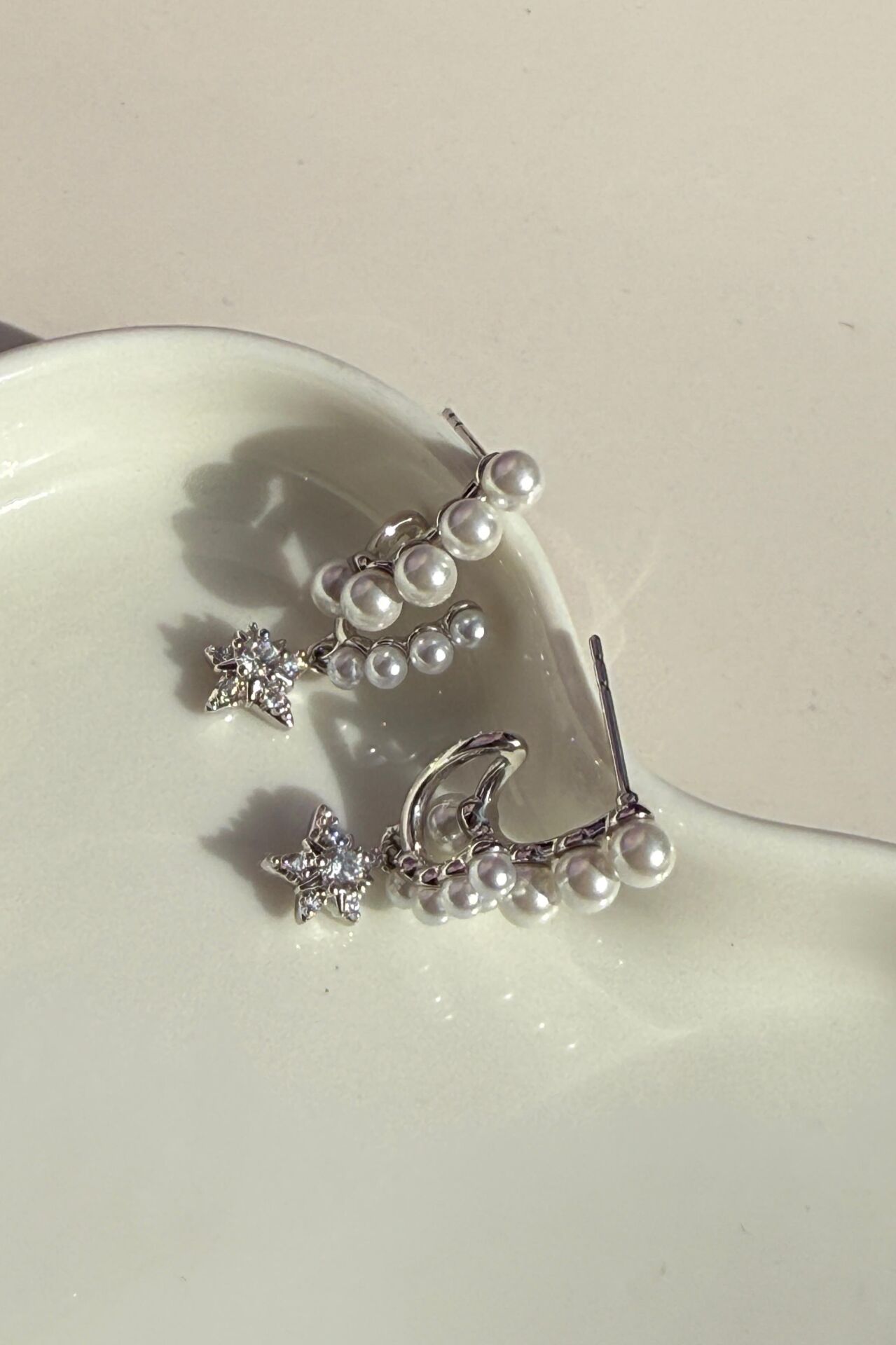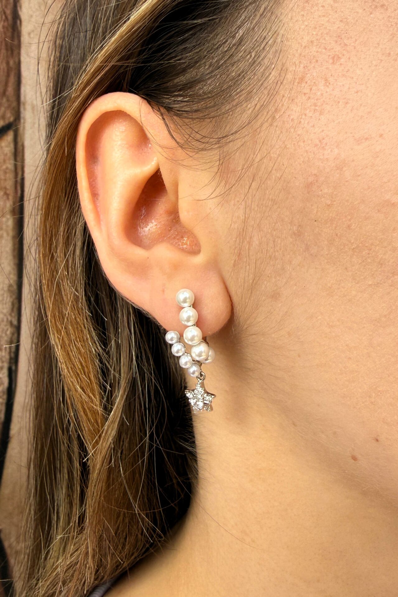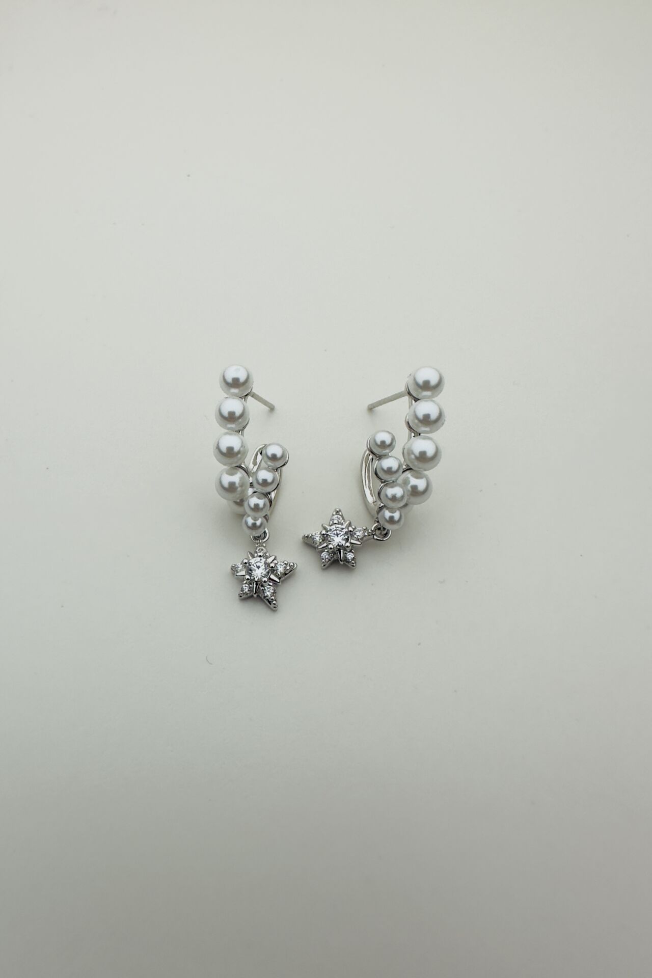 LvLv XP Gümüş Rengi Taşlı Yıldız Detaylı Salantılı Çoklu Görünüm Tasarım Küpe